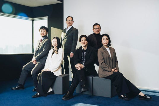 左から、本村 章(執行役員 CDO)、流郷 綾乃(取締役 CSO)、服部 省治(取締役 CTO)、高木 広之介(代表取締役 CEO)、 小島 寛人(執行役員)、野村 有希(執行役員 CHRO)