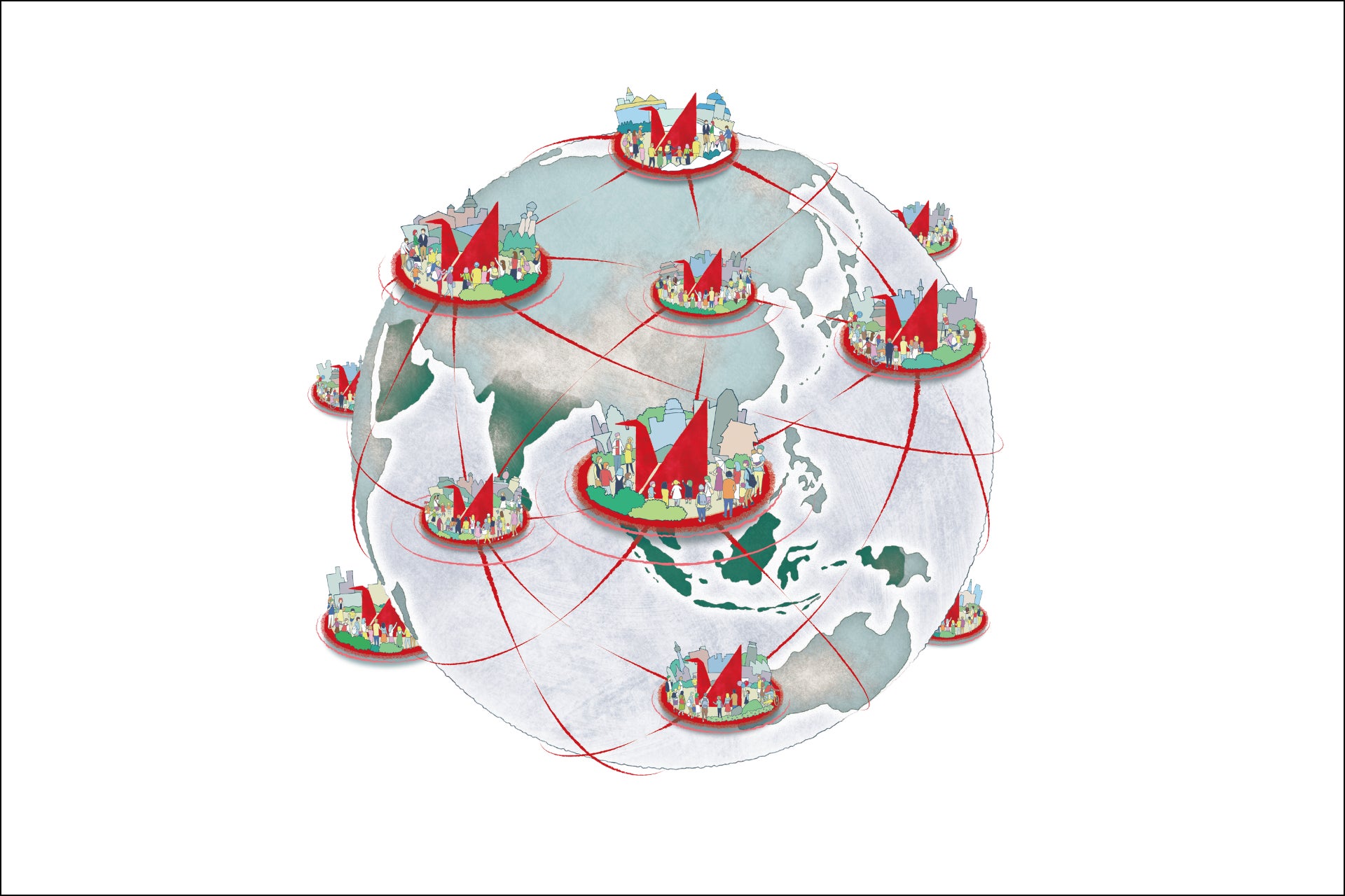 C-BEDモデルが世界へ広がる、分散型社会のイメージ