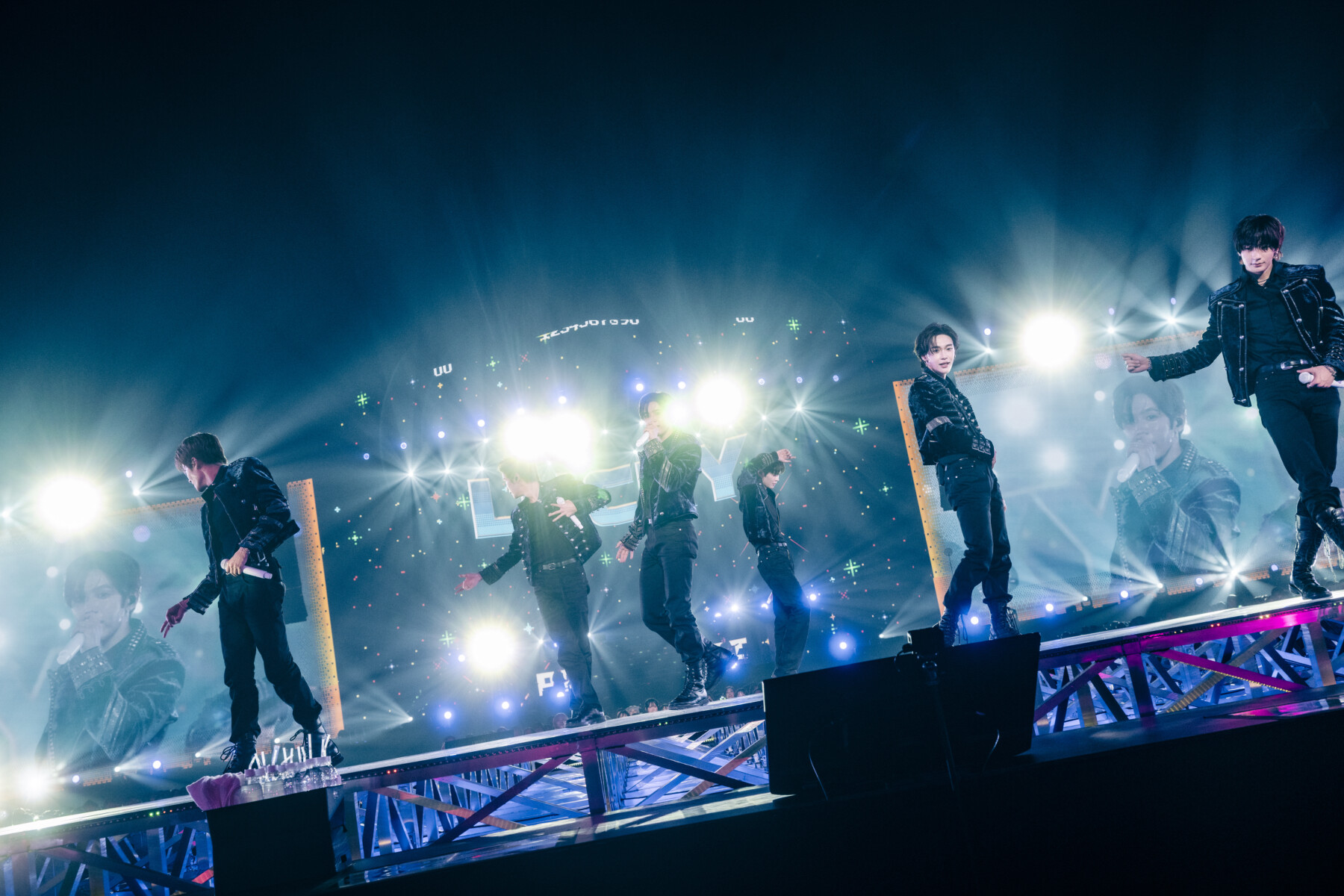 RIIZEのデビュー曲であり、BRIIZEにとっても特別な楽曲「Memories 」からは、生バンドが加わり、スペシャルなステージに。ポップで楽しい雰囲気の日本語曲が続き、初めてのムービングステージも活用して、フロントステージへと移動すると、アリーナからスタンド席、3階席までしっかりと見渡しながら、BRIIZEに手を振ったり愛嬌を届けるメンバーの姿も。大きな会場でもBRIIZEの近くで一緒に楽しみたいというメンバーの想いが伝わってくる。