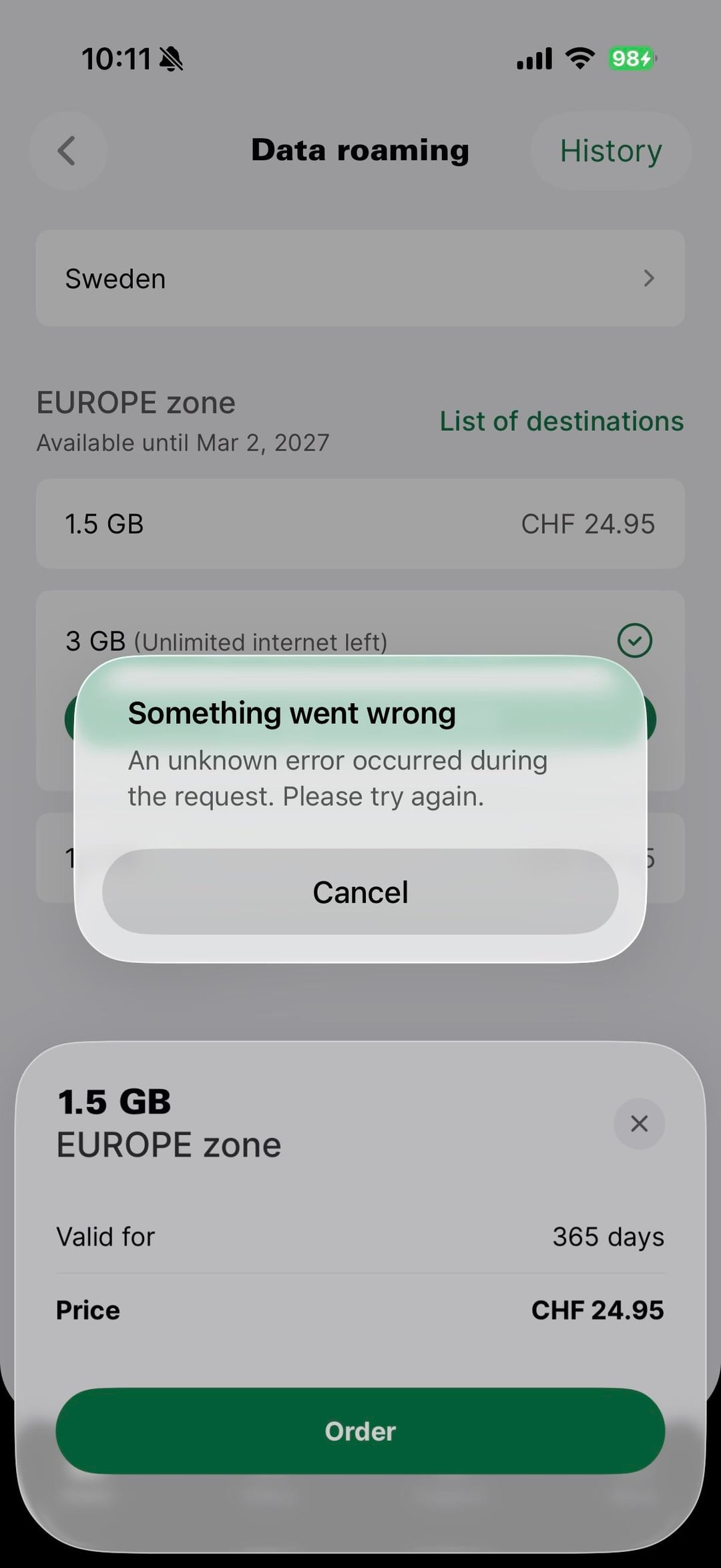 Salt Mobile が提供しなかったサービスの代金を支払ったのですが、問題を解決する代わりに、解決できないと言われました。未使用のデータパッケージの返金と適切な説明を期待します。