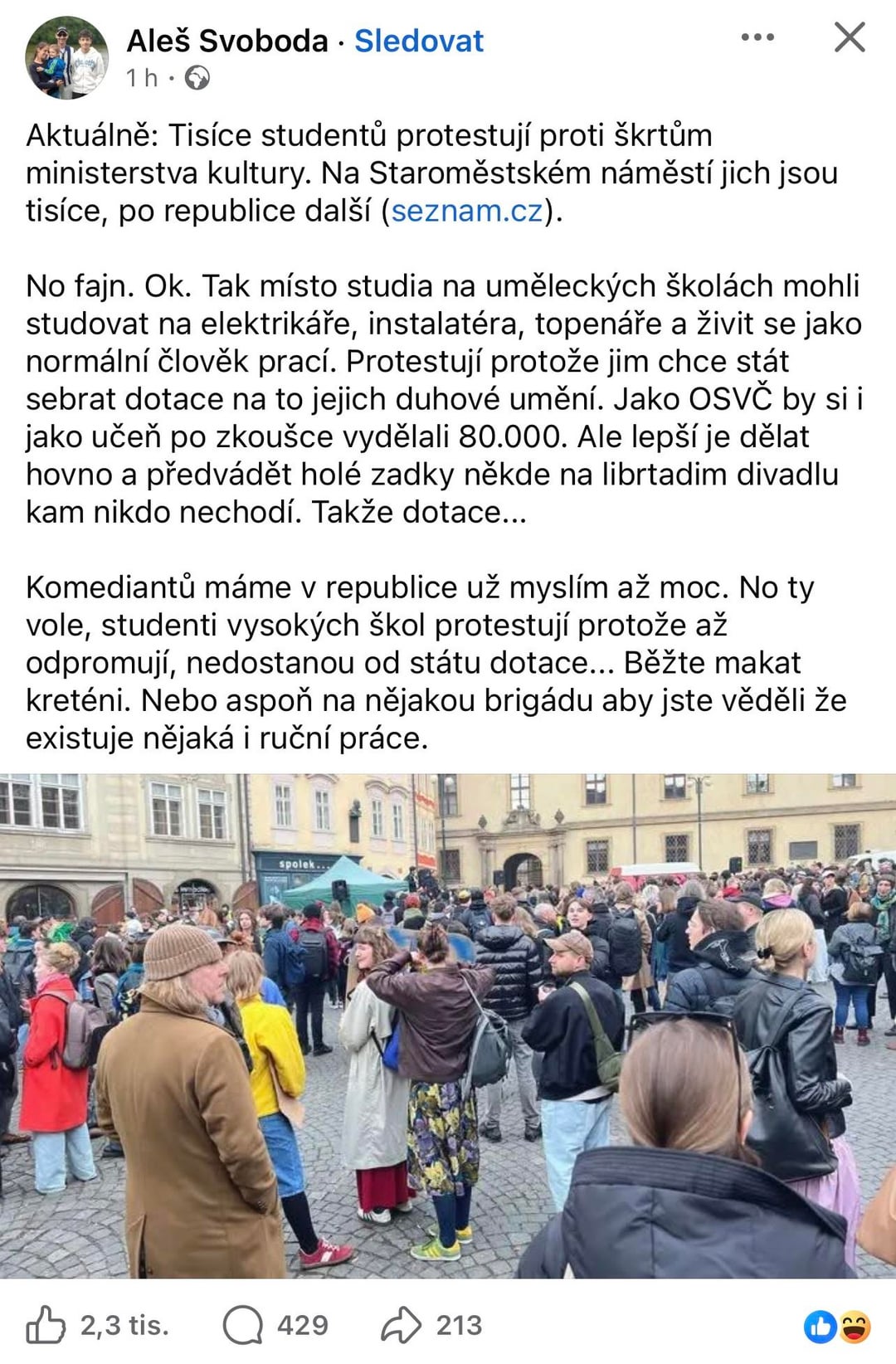君らはラジオもテレビも聞かないように振舞っている。優れた芸術はそれ自体でお金を払うという議論は、これらの人々には理解できないでたらめです – すべてのアーティストは最初から無価値であり、改善するまではお金を稼ぐチャンスはありません。初めに。そして第二に、人口の知能曲線によれば、最も稼ぎたい人は、芸術は二の次で製品を生産しなければならないという事実があります。ホタルの脳に負担をかけなくて済むように。 Czech Republic