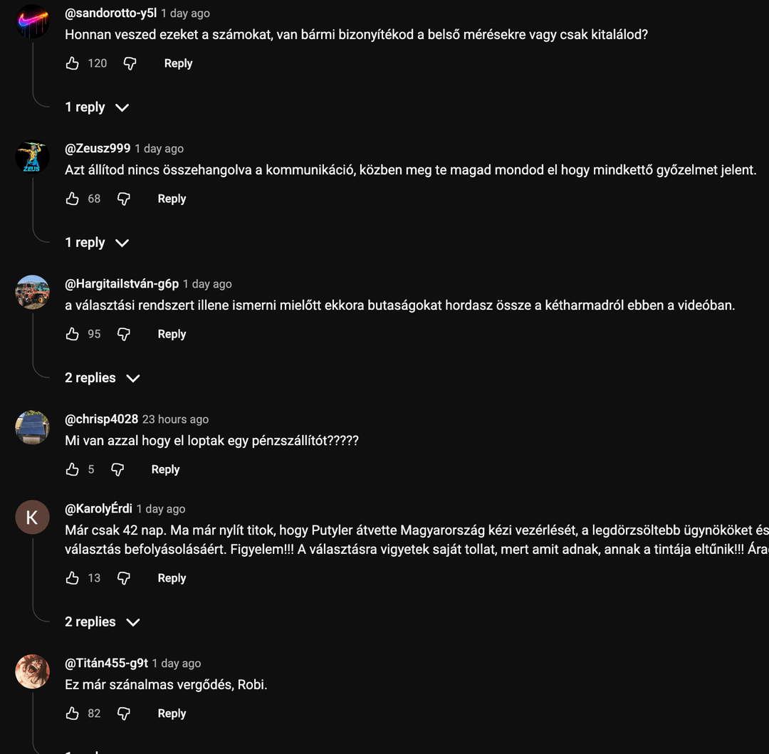 Twitter Pinterest Facebook Tumblr LinkedIn Bluesky Reddit Threads キス魔だよ 彼のビデオ 以下は、賛成票が 100 を超える上位 4 つのコメントすべてです。興味深いことに、4 つすべてが同じ日、2026 年 3 月 2 日に YouTube に登録されています。 Hungary
