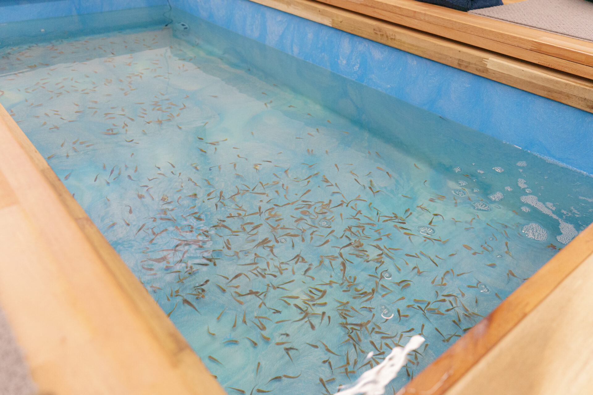 店内奥へ進むと、ドクターフィッシュたちが元気に泳ぐ水槽があります。