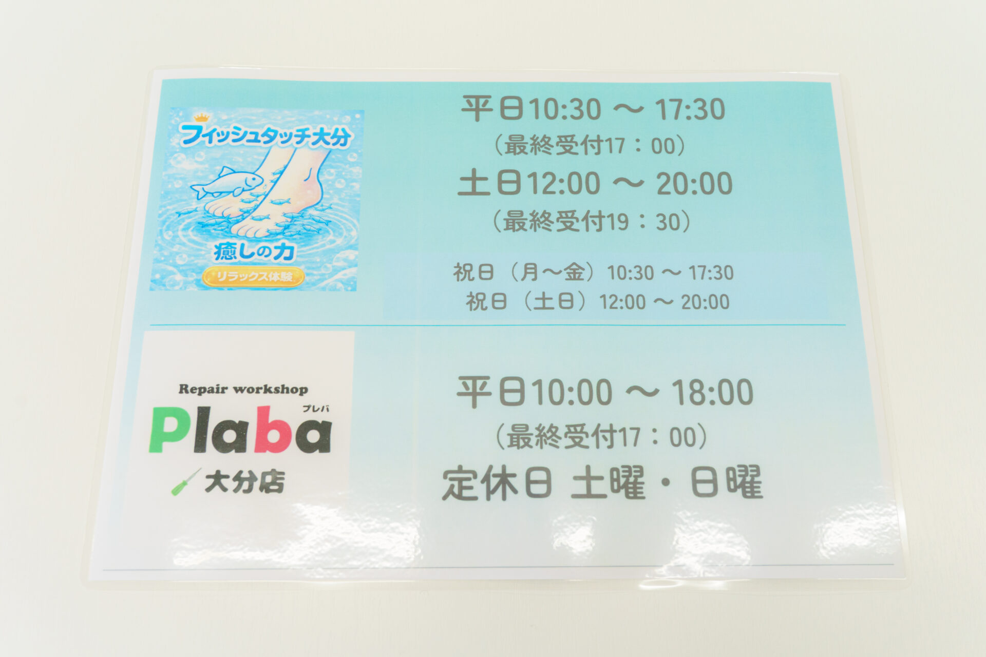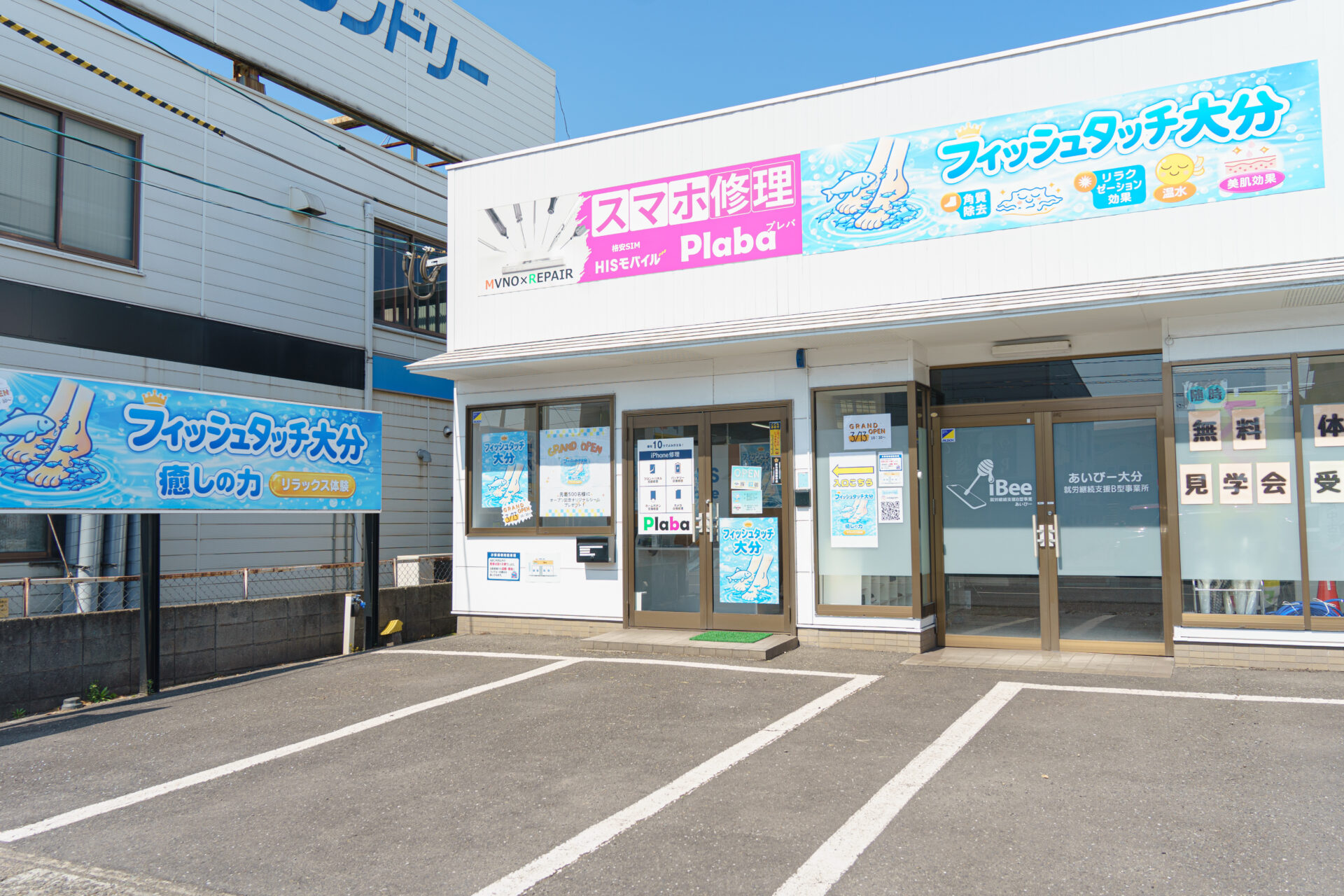 『フィッシュタッチ大分』と書かれた可愛いブルーの看板が目印です。
