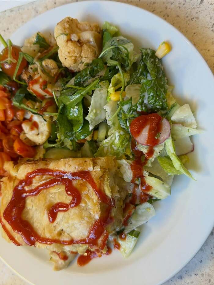 他には、サラダやオムレツがどっさり盛られた食事のショットや・・・
