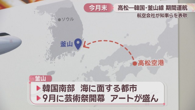 高松ー釜山線は、3月31日から10月23日まで毎週火曜、金曜、日曜の週3回往復します。