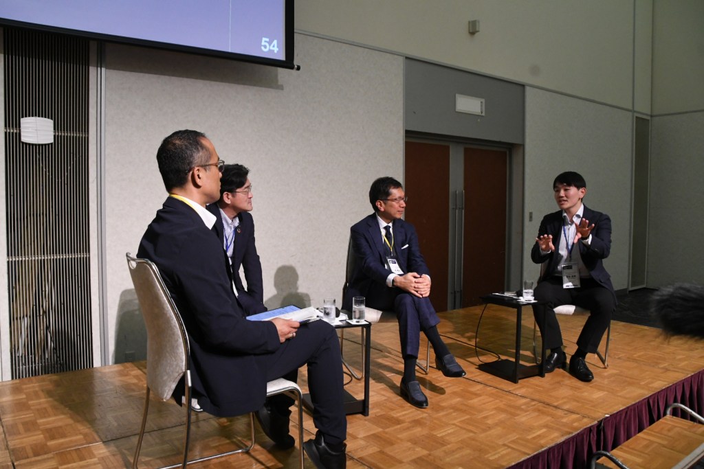 レジェンド・キャピタル 共同最高投資責任者 パク・ジュンソン氏、インパクト投資会社Sopoong Ventures CEO サンヨプ(マックス)・ハン氏、ベンチャーキャピタル Asu Capital Partners ファウンディングパートナー 夏目 英男氏、BEENEXT CEO 佐藤氏が登壇し、日本や徳島の魅力や今後について、海外の目線から意見を交わしました。
