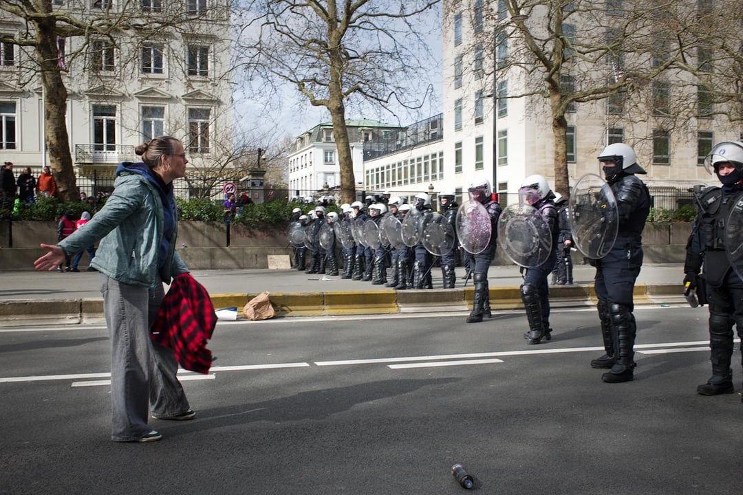 私はたまたまブリュッセルにいたので、抗議活動に少し同行しました。それは平和的な抗議活動でしたが、アメリカ大使館に着くと、機動隊が到着した瞬間に私はアンティファのグループの中にいたことに気づきました。米国大使館とアンティファということ以外に、なぜ彼らがそこにいたのかについては何も分かりませんでした。おそらく警察は武力行使に抵抗できなかったのでしょう。私はもう少し写真を撮るのに十分な時間滞在しましたが、催涙ガスが出てくる前にすぐに体力がなくなりました。 Belgium
