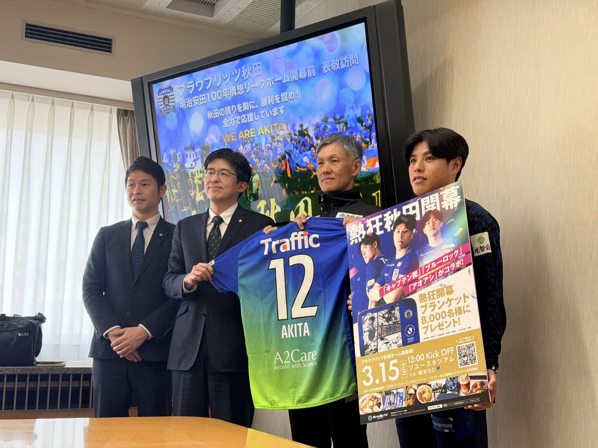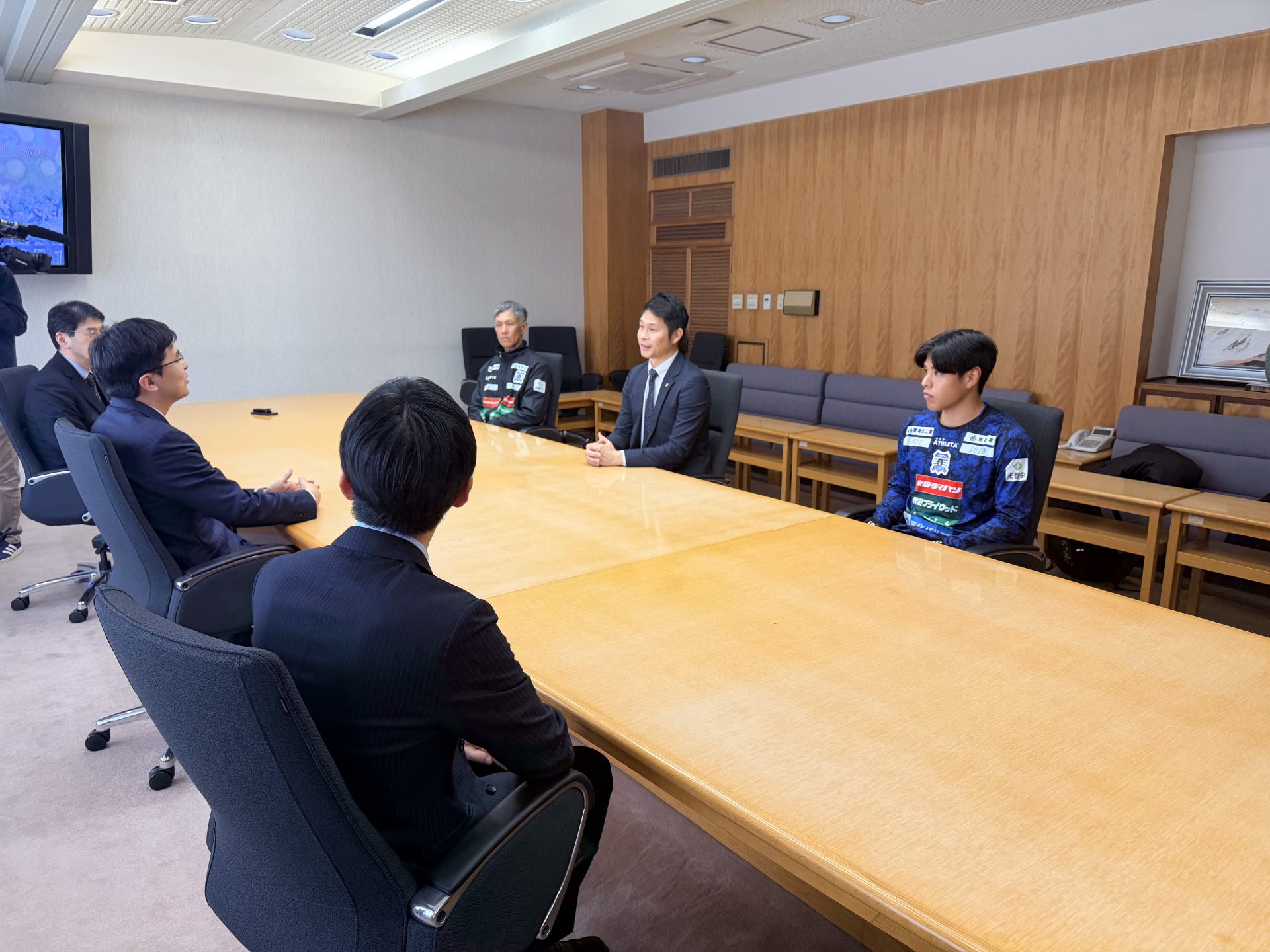 3月15日(日)の明治安田J2・J3百年構想リーグのホーム開幕戦を目前に、岩瀬浩介代表取締役社長、吉田謙監督、MF6 諸岡裕人選手が、谷剛史秋田県副知事を表敬訪問しました。