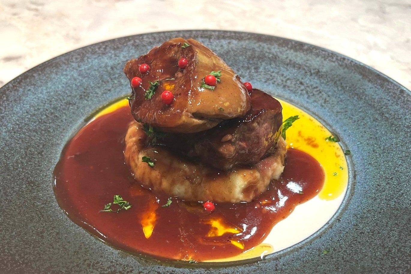 2大看板メニューは、こぼれ落ちるほどウニといくらを盛り付けた「うにとイクラの冷製パスタ」(2,728円)、フォアグラのソテーと黒毛和牛のステーキに赤ワインベースのトリュフソースで仕上げた「フォアグラとステーキ」(2,420円)。ショーケースに並ぶ「小皿料理」(常時8~10種類、198円~)やフレンチの技法を使った料理をワンハンドでカジュアルに楽しめる「串焼き」(8種類、1本308円~)など小ポーションのメニューも豊富にそろえ、おひとり様や2軒目使いとしてもご利用いただけます。