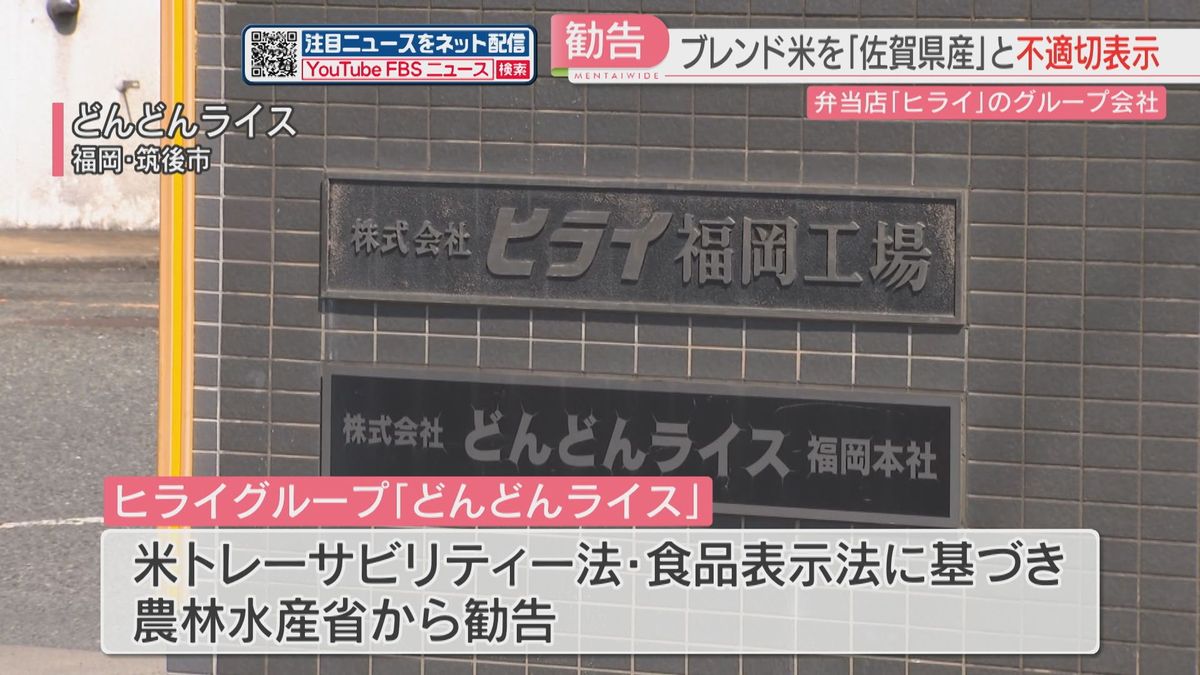 米トレーサビリティー法と食品表示法に基づき農林水産省から勧告を受けたのは、弁当店「ヒライ」を展開するヒライグループで筑後市に本社を置く「どんどんライス」です。