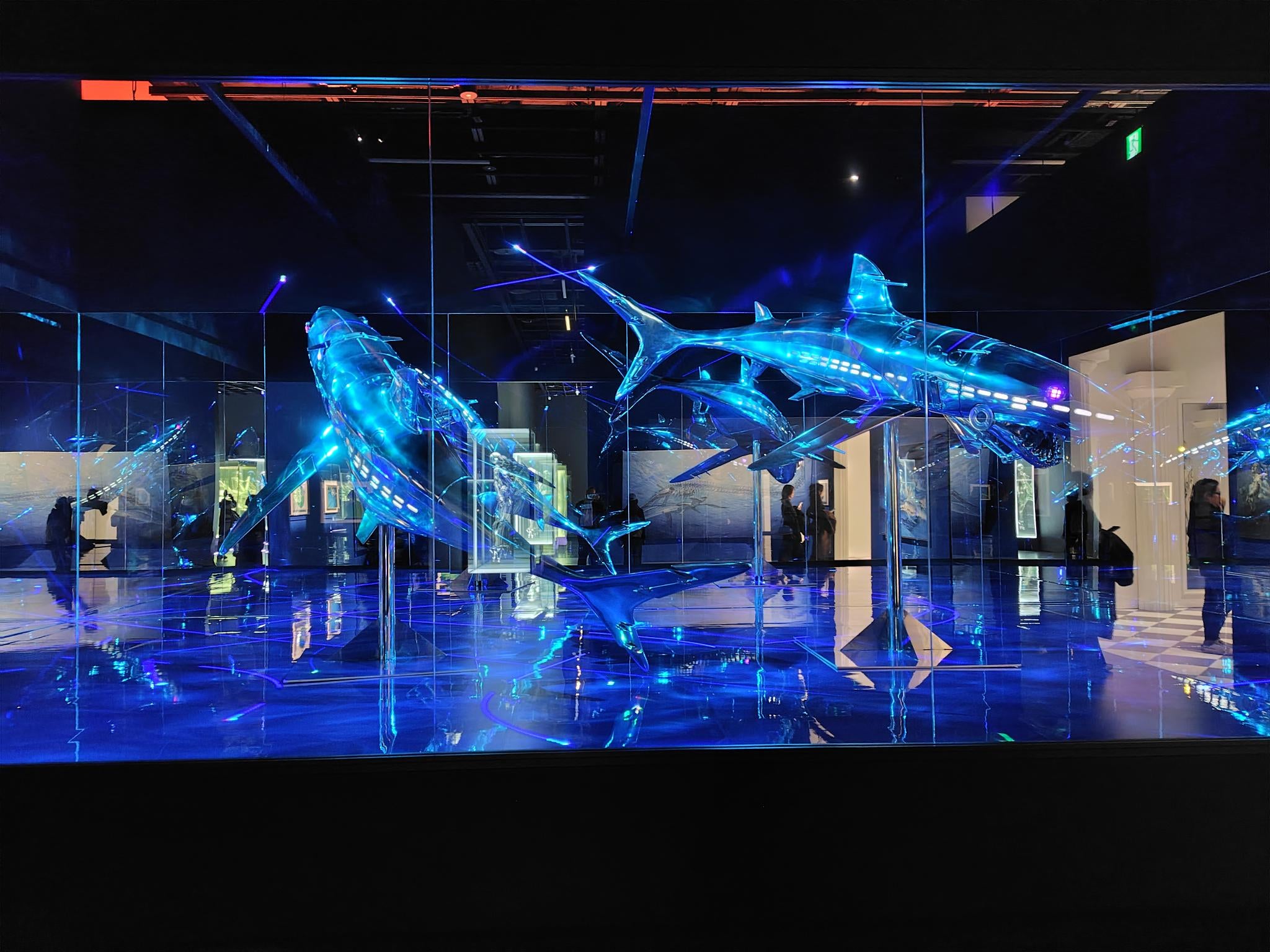 巨大なロボットシャークが展示されたアクアリウムです。