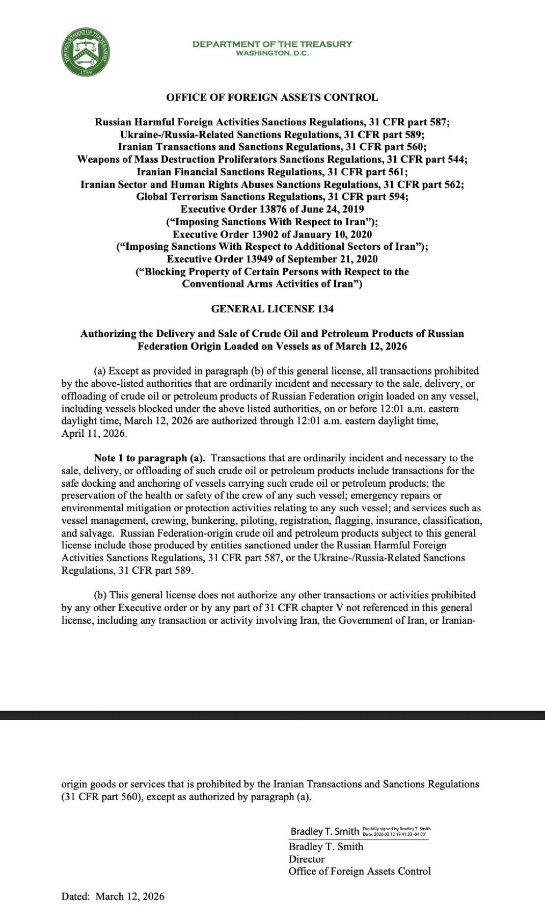 米国は対ロシア制裁を解除し、船舶に積まれたロシア産石油・石油製品の販売を3月12日から許可することを決定した。