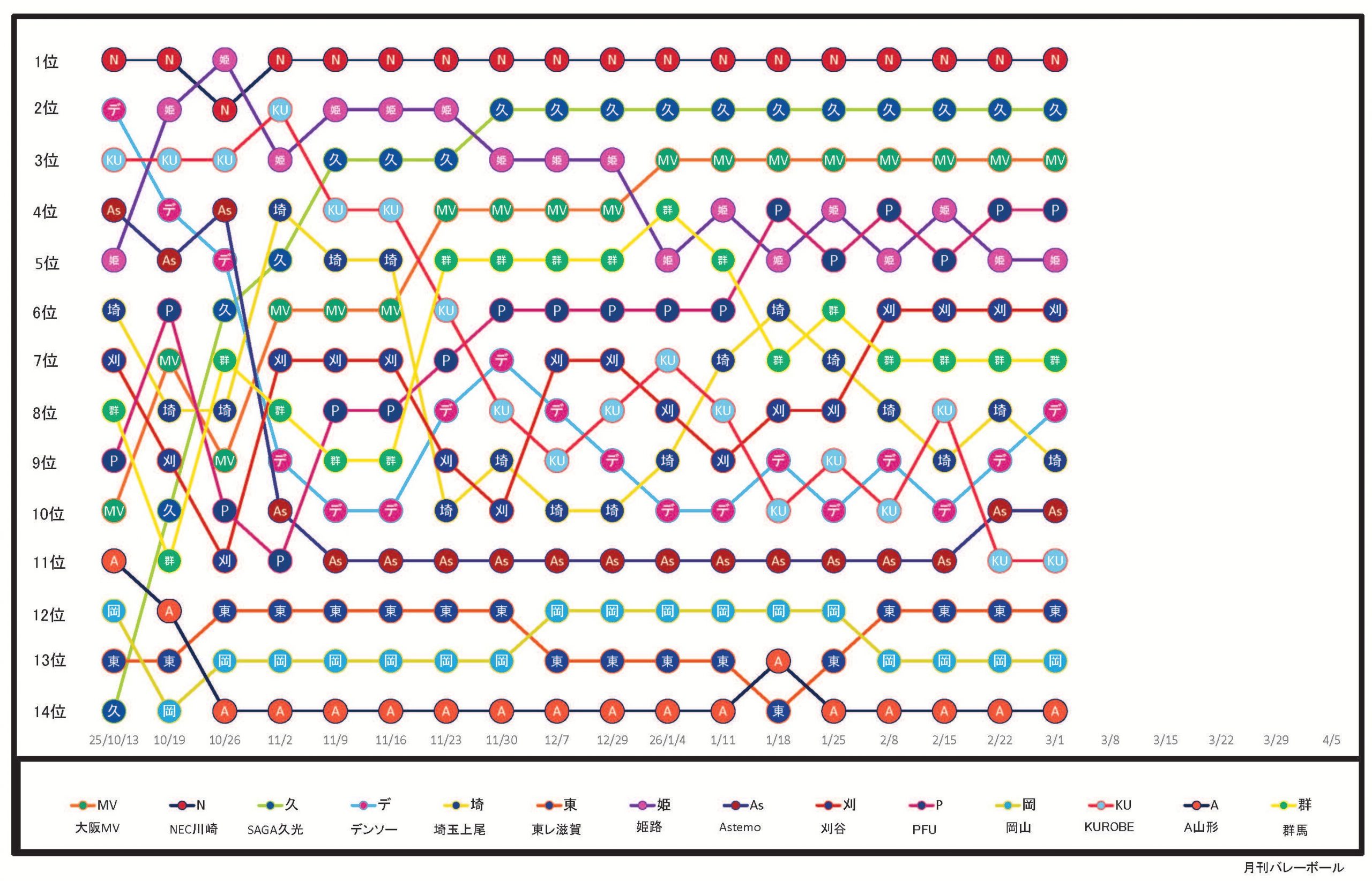バレーボールの国内最高峰リーグ、2025-26大同生命SV.LEAGUE WOMEN(SV女子)は2月28日(土)と3月1日(日)の2日間で14試合が行われた。