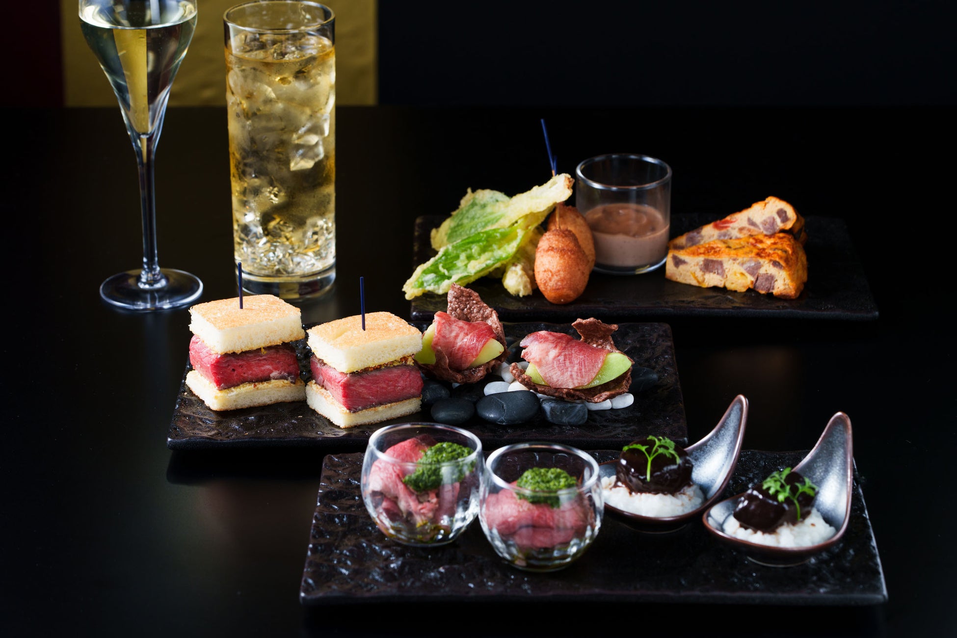 ドリンクには、スパークリングワインをはじめとしたフリーフローに加え、宮城が誇るウイスキー「ニッカ 伊達」をハイボールやロックで。琥珀色の輝きが“粋”で特別な時間に深みを添えます。