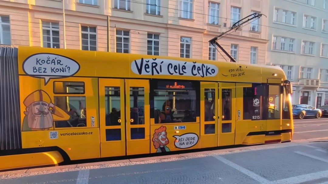 私は最近、「チェコ共和国全体を信じます」というプロジェクトを宣伝する子供じみた絵(そしてひどく悪いジョーク)が描かれた黄色のステッカーが上から下まで貼られた路面電車に乗りました。無神論のチェコ共和国にこのようなものが存在することに私はかなり驚きましたが、それはそれでいいでしょう。彼らはキリスト教を宣伝しようとしているのかもしれないと思いました。