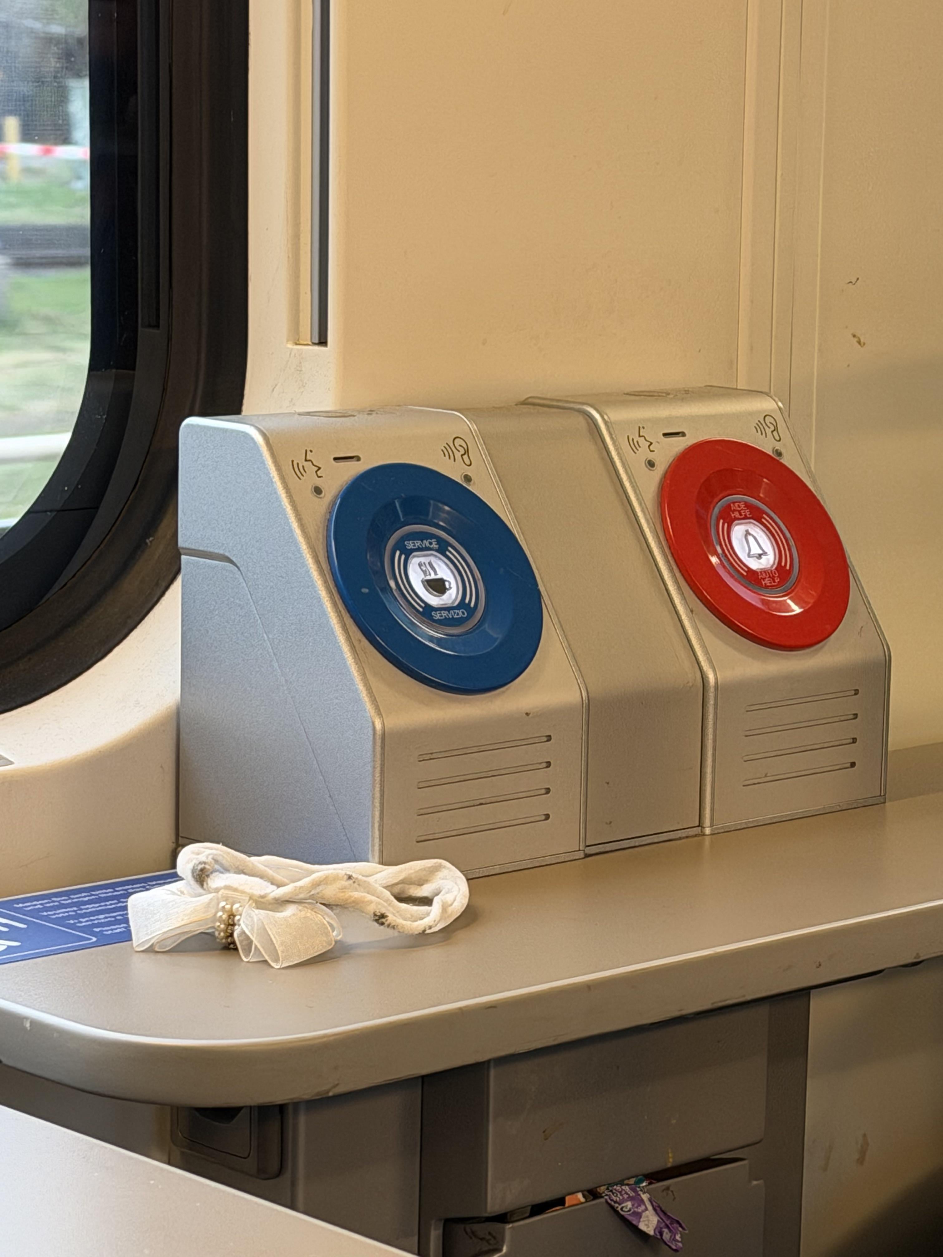 (ずっとスイスに住んでいたのですが)レストランから店員を呼ぶための青いボタンを初めて見ました。 鉄道専門家: これは新しい鉄道モデルで追加されたものですか、それともレガシーなものですか? 床は全く新しく見えなかったので、古い馬車かもしれません Switzerland
