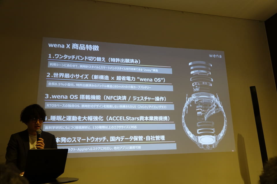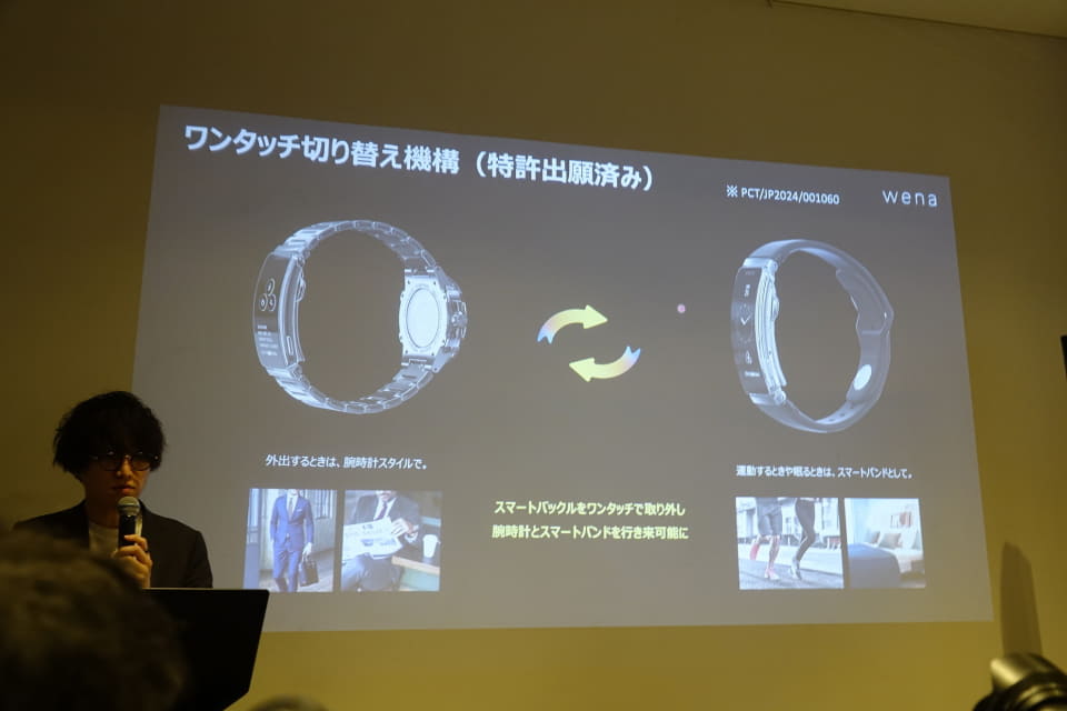 初代から4代目となる今回の「wena X」では、カラーディスプレイになったほか「腕時計とスマートバンドの姿が行き来できるような構造」となるなど、コンセプトを含めたさまざまな部分が進化した。