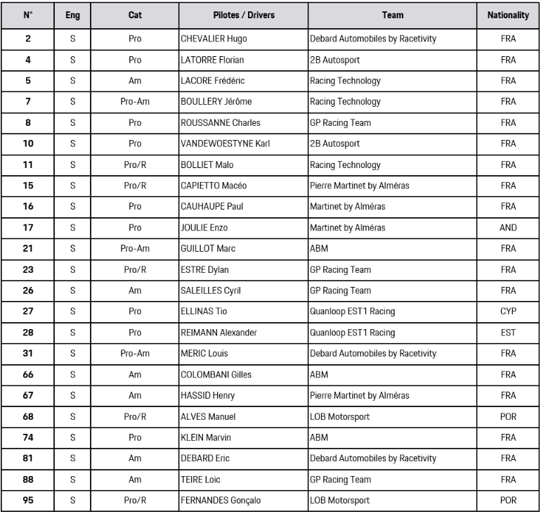 王者を倒すべく、マルティネ・バイ・アルメラスは、2025年ルーキー準優勝のポール・コーオーペ、かつてプロアマカテゴリーに所属し現在はアマチュアカテゴリーに参戦しているエンツォ・ジュリエ、ヘンリー・ハシッド、そして2026年ポルシェ・カレラカップ・フランスジュニアドライバーのマセオ・カピエットを擁する。かつてシングルシータードライバーだった彼は、2021年にF4フランスで3位に入賞し、 エルムス 昨年、このフランス人選手は大きな野望を抱いてこの大会に臨むことになる。
