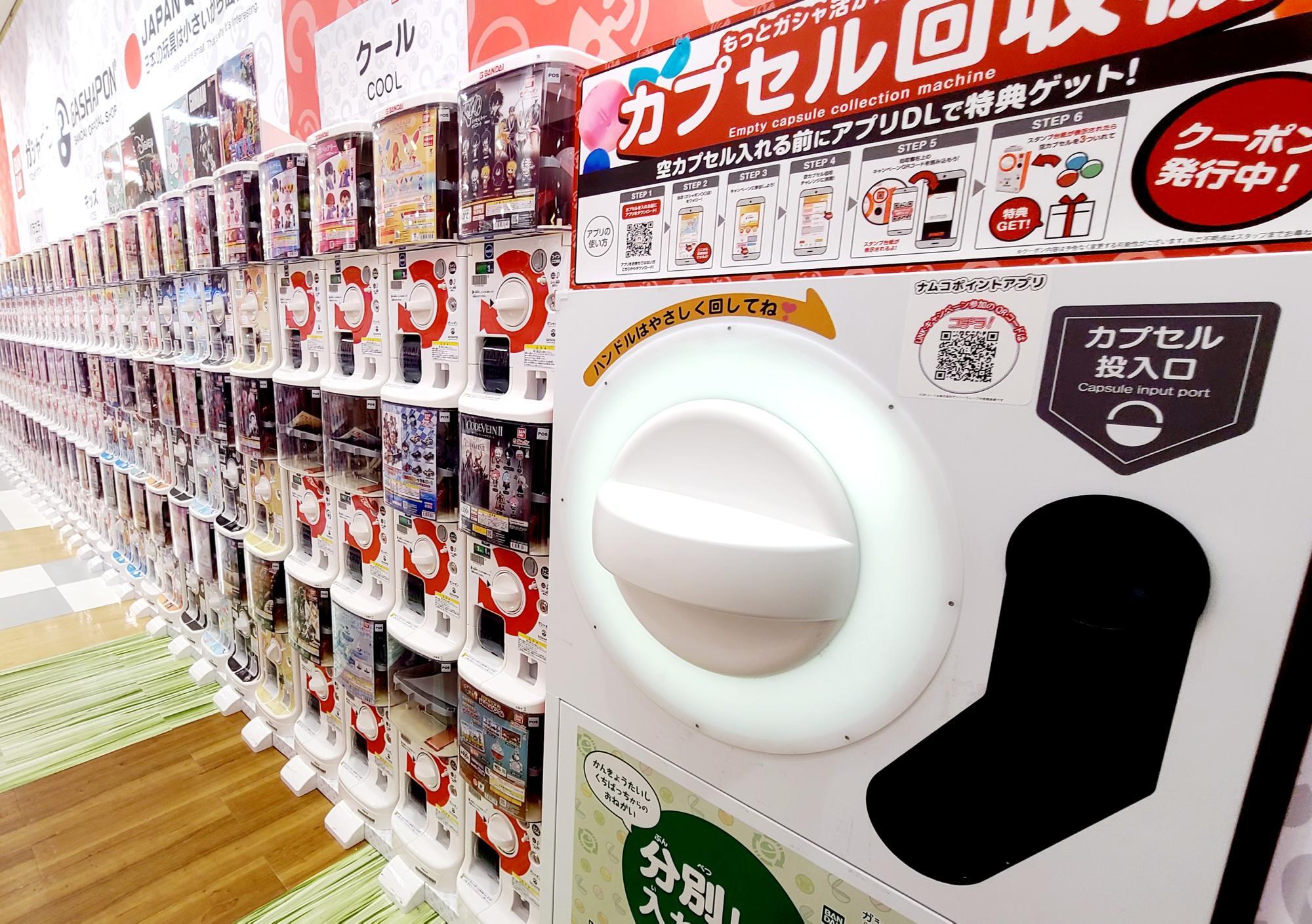 また、ガシャポンの醍醐味であるハンドル操作が体感できる、空カプセル回収ボックス「ガシャポイントステーション」や注目商品を展示するショーケースなどもあり、どれも興味深くて目を引くものばかりでした。