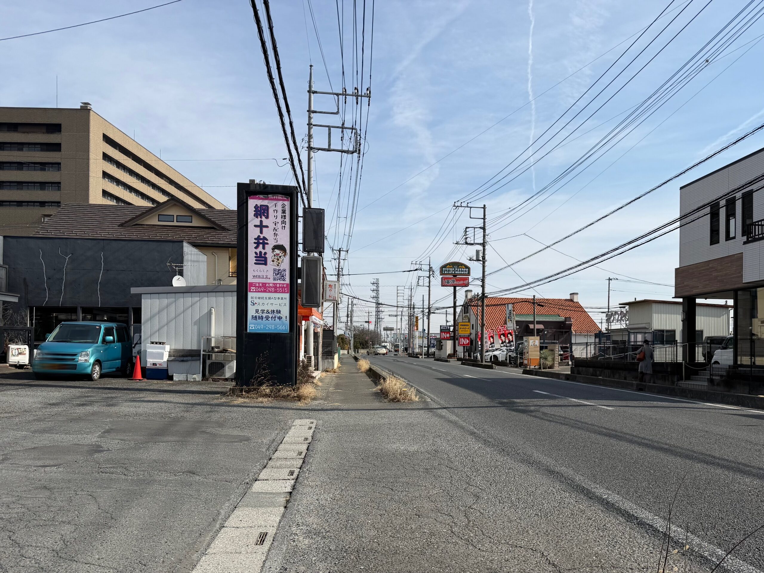 3月22日(日)をもって閉店となる「フライングガーデン 川越埼玉医大前店」や、「秋田ラーメン はま」がある通り沿いです。