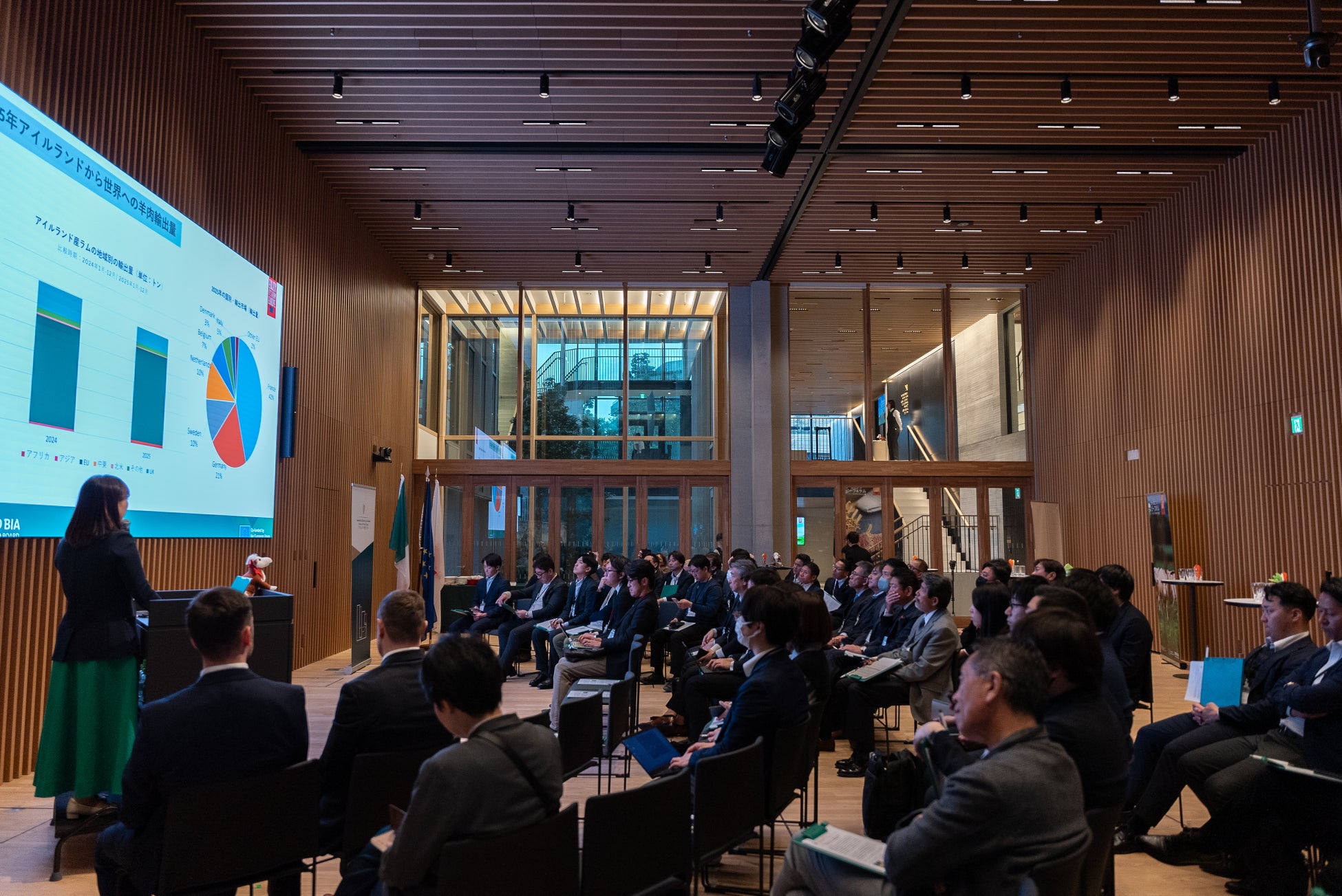2026年3月11日(水)には、駐日アイルランド大使館(東京・四谷)にて、業界関係者向けセミナーおよび試食会を開催しました。アイルランド政府食糧庁Bord Bia(ボード・ビア)によるプレゼンテーションでは、アイルランドの屠畜見通しや日本市場への輸出状況、World’s Best Steak Awardsでの受賞実績について紹介しました。その後のレセプションでは、アジア初の「Chefs’ Irish Beef Club Japan」のメンバーシェフである、The Momentum by Porscheの林シェフが腕を振るい、アイリッシュビーフバーガーやアイリッシュラムカツレツを提供し、皆さまにお楽しみいただきました。