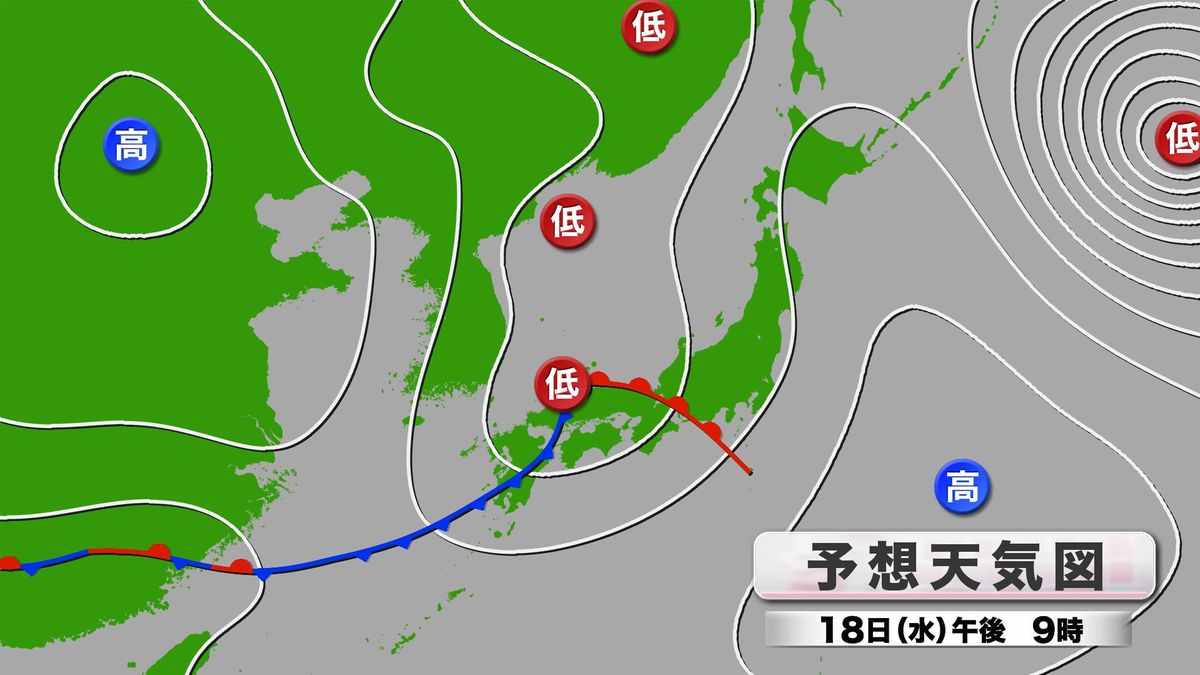 この雨雲は低気圧や前線によるもので、きょう18日(水)の夜にかけて県内付近を通過する見込みです。