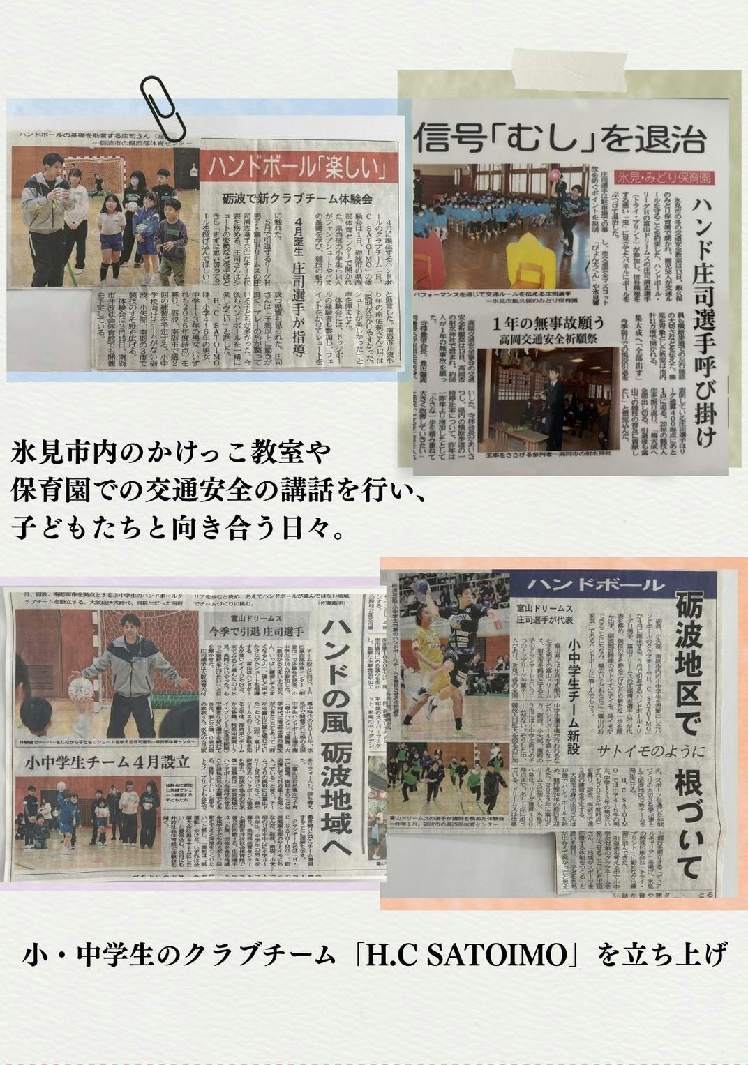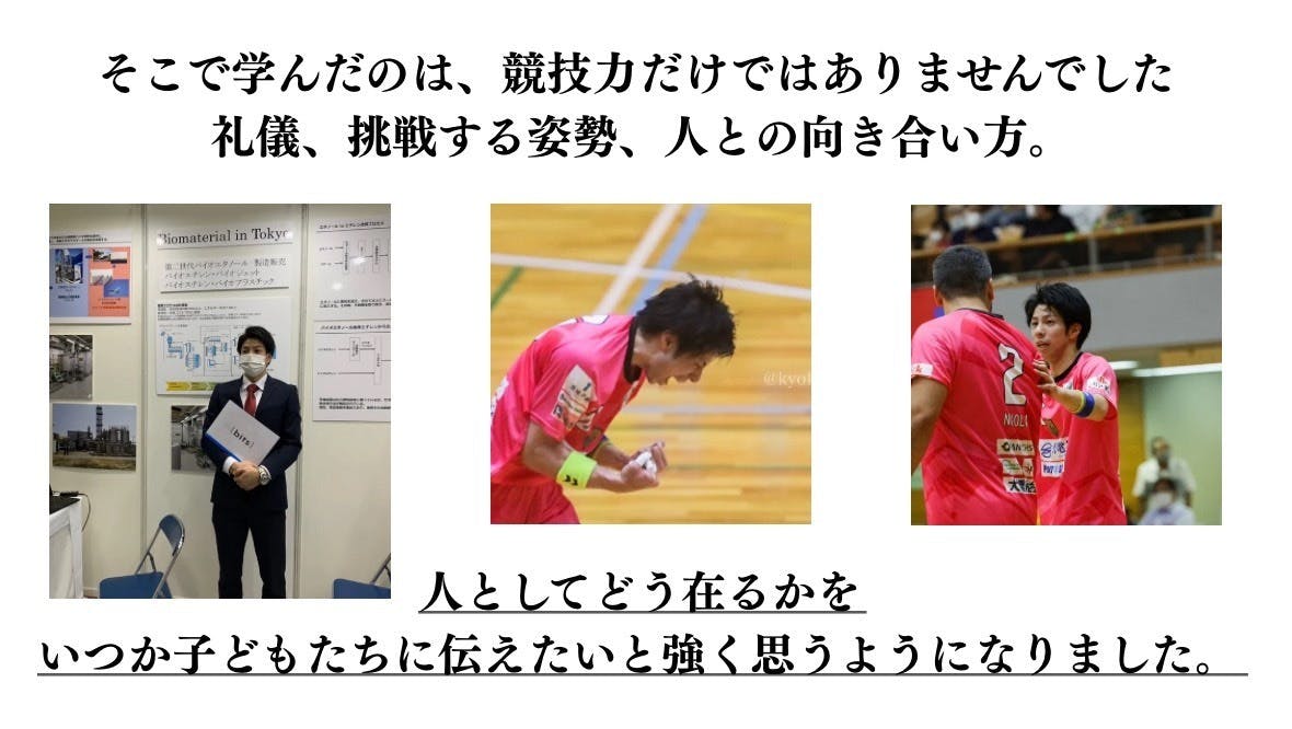 2026年4月からはハンドボールチームがない地域で、夢だった小・中学生のクラブチーム「H.C SATOIMO」を立ち上げ、代表に就任。また、子ども向けの運動教室やスポーツ指導なども行っています。年齢や背景も異なる子どもたちと向き合っていると「身体を動かすこと」が人の心を開き、関係性を生む力を持つということを実感しています。