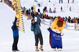 開幕初日のオープニングセレモニーには、群馬県宣伝部長のぐんまちゃんが見守る中、雪山の丘の上から、安定感のある走りで斜面を下ってきたゲレンデタクシーから、群馬県出身・ぐんま大使の中山秀征さんが登場。続くトークセッションでは、「子供の頃に雪が降ると夢中で雪だるまを作った」エピソードなどをお話しいただきました。