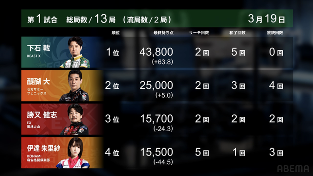 ▷ https://t.co/PbIlVn4dtz#Mリーグ pic.twitter.com/PXxZvbxYnx
