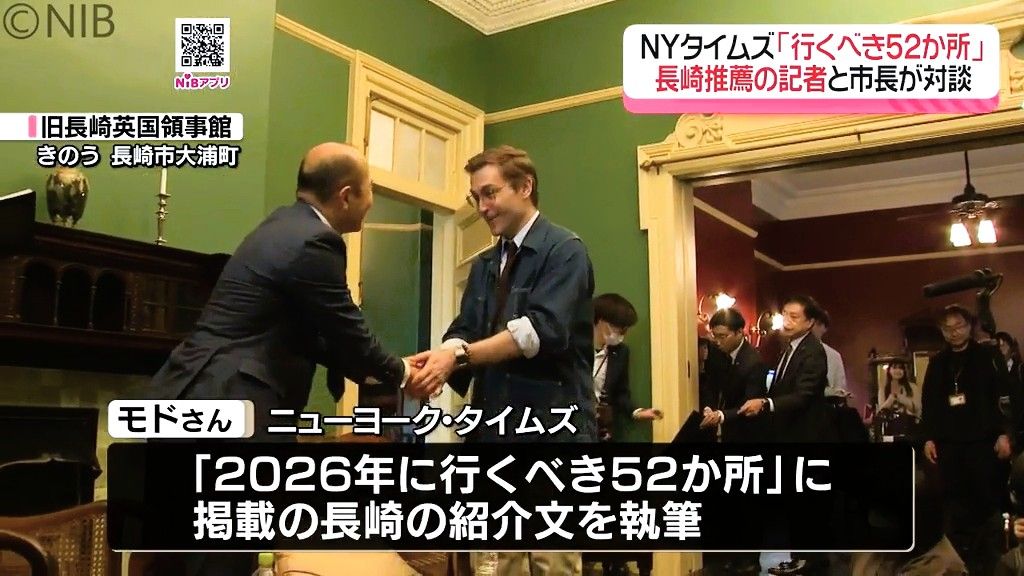 アメリカの有力紙「ニューヨーク・タイムズ」の『2026年に行くべき52か所』に、長崎市を推薦した記者と長崎市の鈴木市長が19日に対談しました。