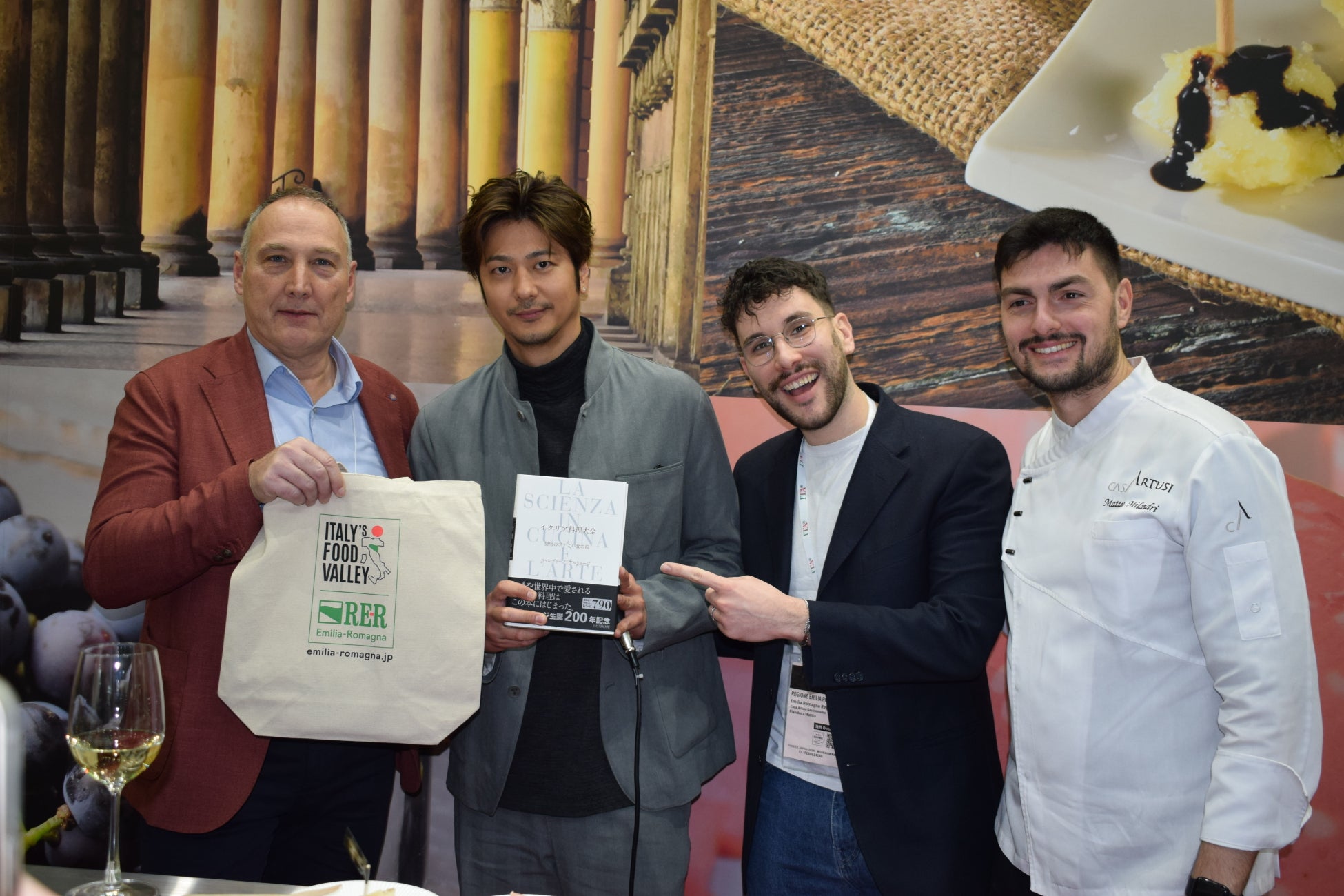 「Casa Artusi(カーサ・アルトゥージ財団)は日本市場で重要かつ認知された存在であるだけでなく、食の外交における戦略的ツールとしても機能しています。イタリア料理文化とペッレグリーノ・アルトゥージの遺産を通じて、DOP・IGP製品のプロモーションに文化的価値を加えています」と述べました。クッキングショーでは、ペッレグリーノ・アルトゥージの著書『イタリア料理大全 厨房の学とよい食の術』(15以上の言語に翻訳、日本語版は2020年出版)に着想を得た代表的な郷土料理が紹介されました。