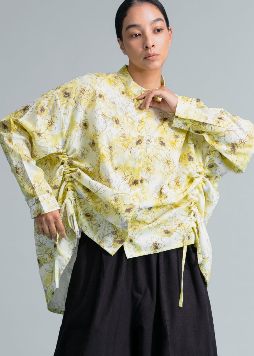 (JACKET) Rhythm Scarf Blouson 56dt Khadi ¥45,100 (TOPS) Asymme Side Long SH F/S Print Khadi ¥44,000 (BOTTOMS) Sculpted Balloon Pants 56dt Khadi ¥31,900