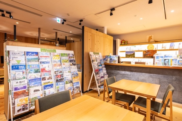 長野県77市町村の観光パンフレットが揃うなど資料も充実。