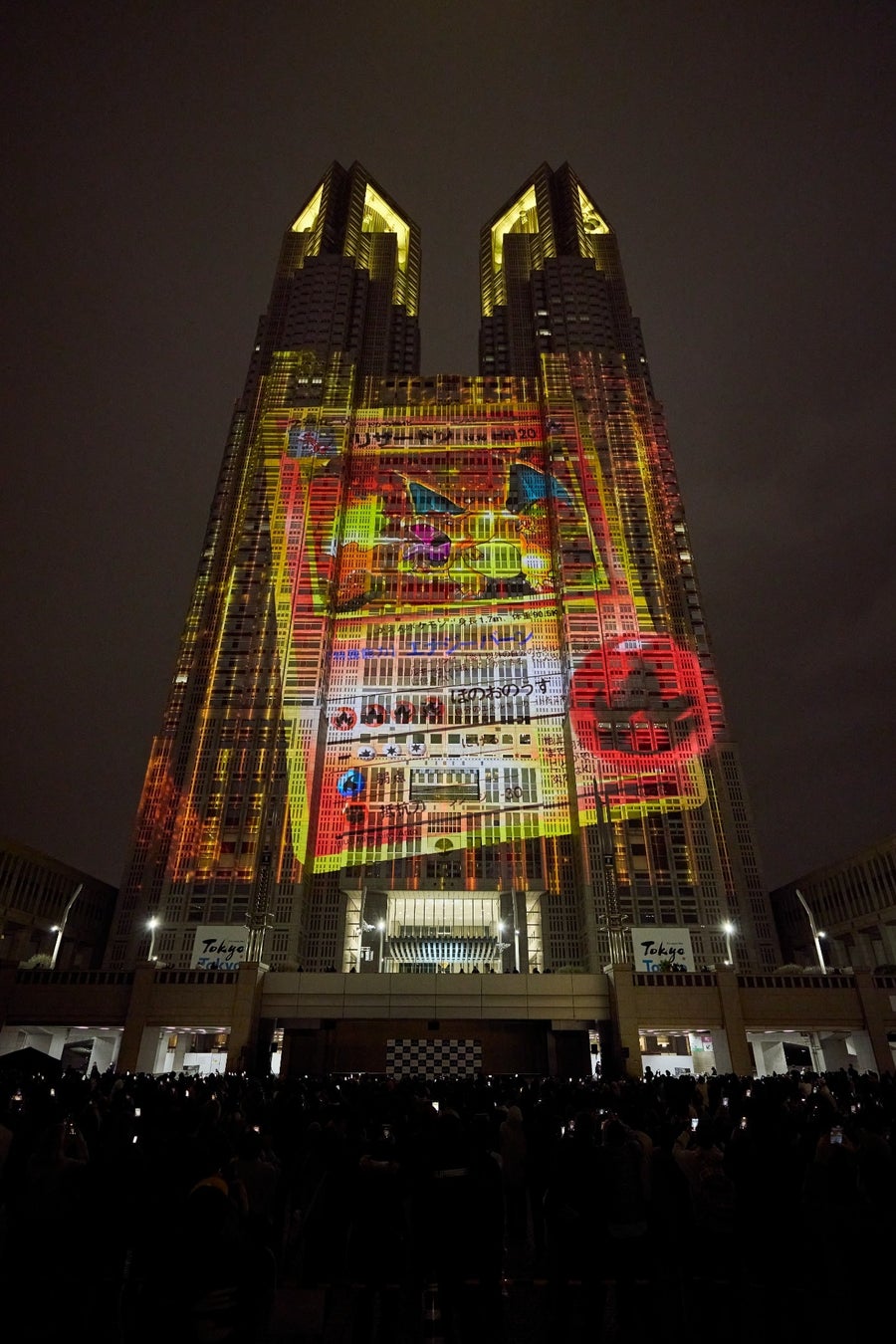 東京都では、夜間の観光振興の活性化に向けて、東京の夜を彩る新たな観光資源を作るため、代表的なランドマークである都庁第一本庁舎をキャンバスに光と音で多彩なアートを表現するプロジェクションマッピングを通年で上映しています。