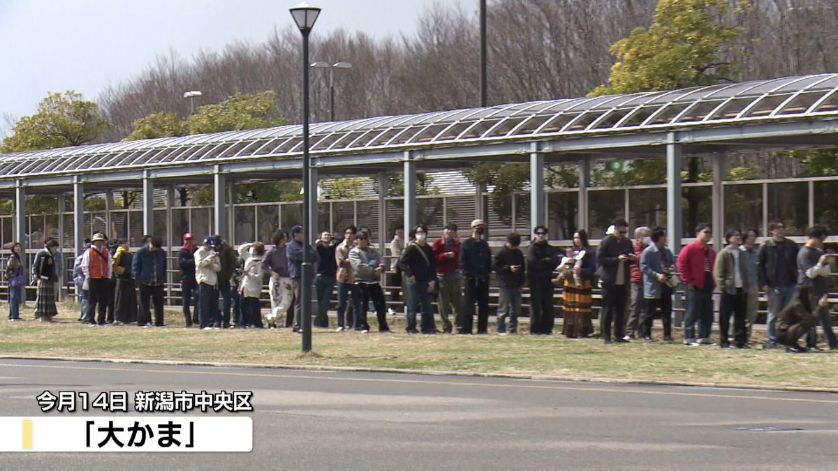 3月14日、新潟市中央区の「大かま」にできた長い列。