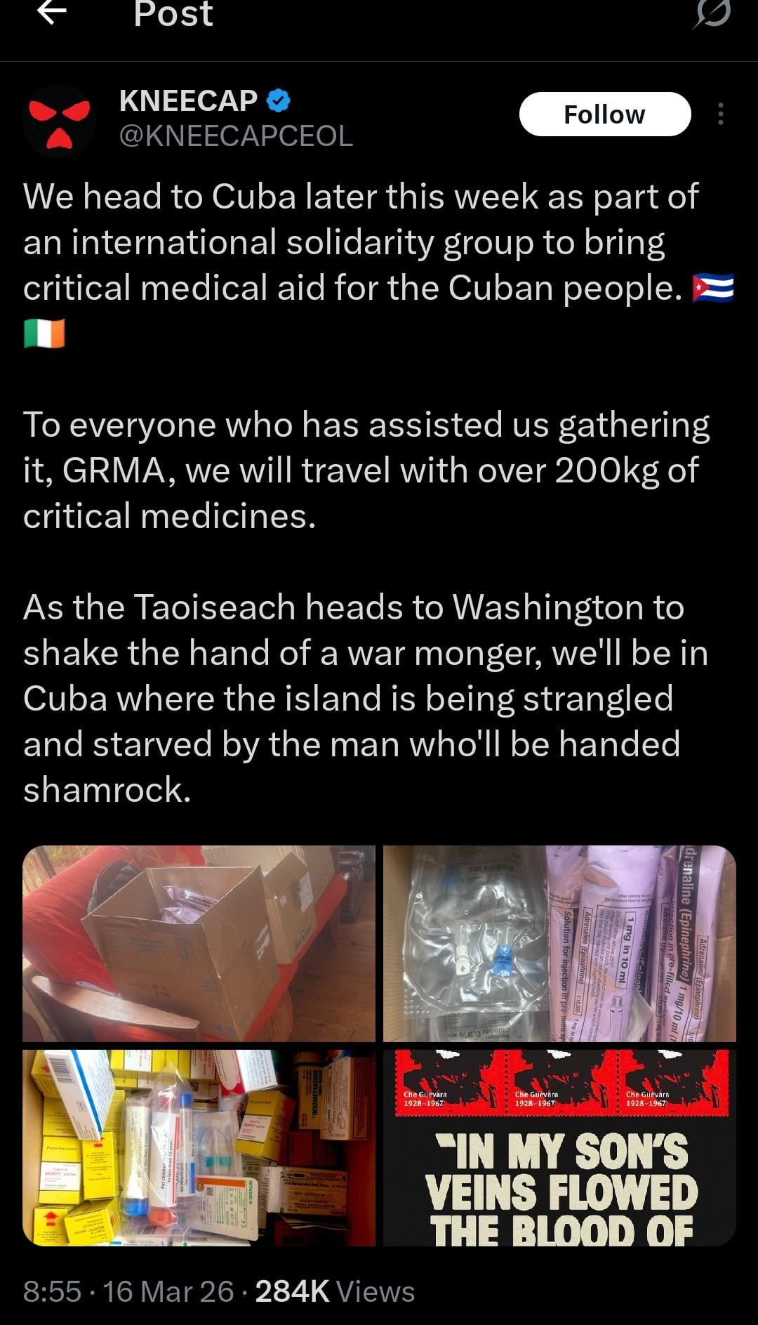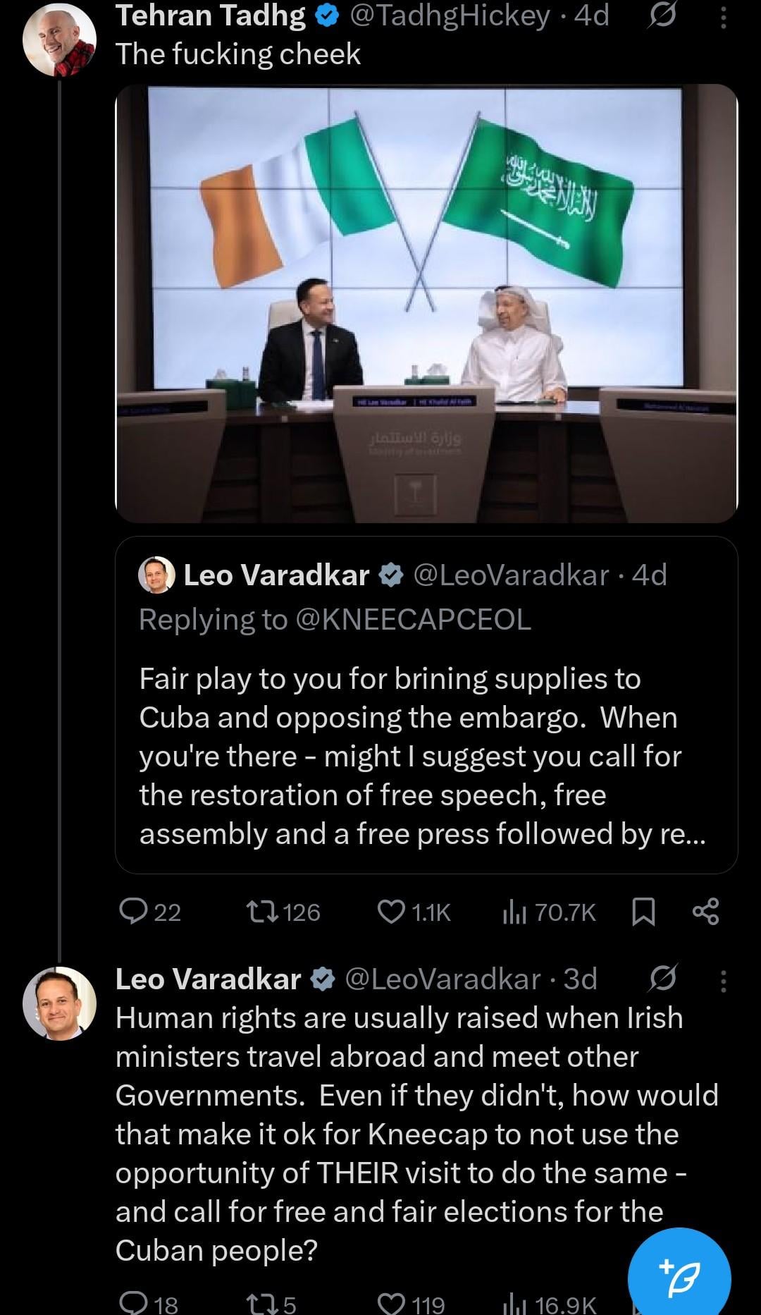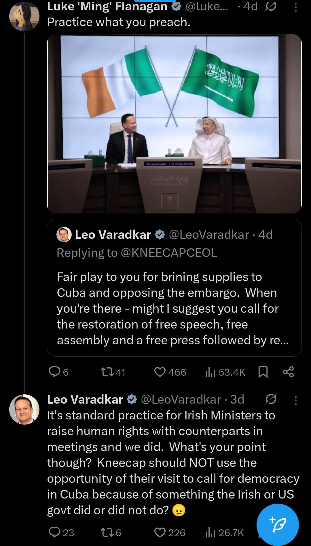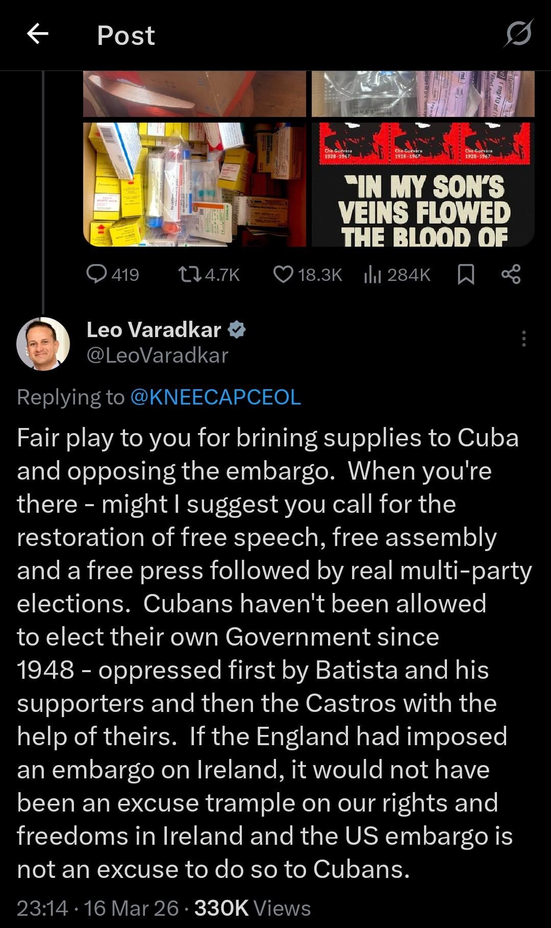 Twitter Pinterest Facebook Tumblr LinkedIn Bluesky Reddit Threads レオ・バラッカーはキューバ訪問についてソーシャルメディアで膝蓋骨と激しく争っている Ireland