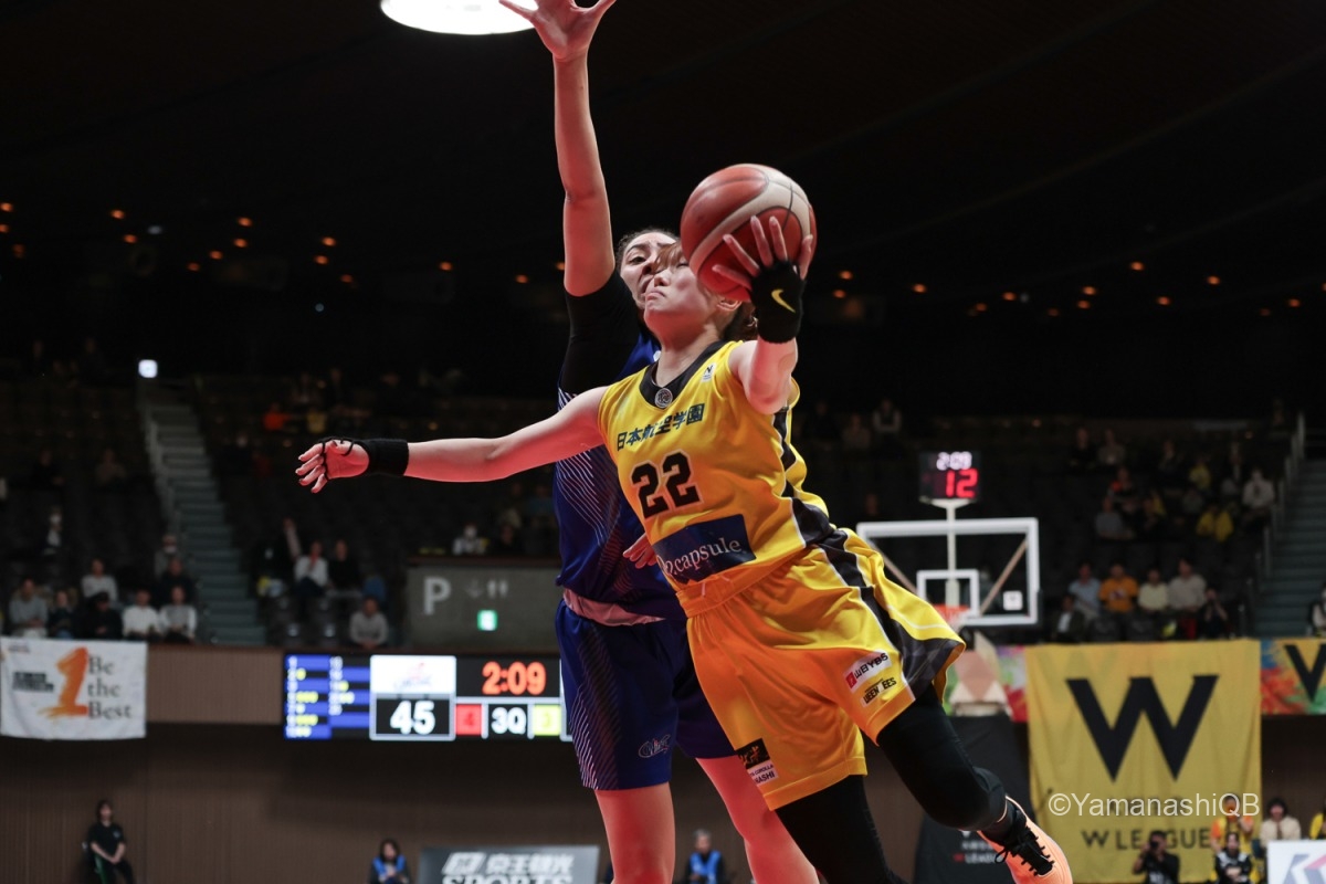 残り6分22秒、クィーンビーズはタイムアウトで立て直しを図るも、渡嘉敷の得点で流れは止まらず、一時は0-13。ようやく上長美菜のシュートで初得点を挙げるが、シュートはリングに嫌われ続ける。
