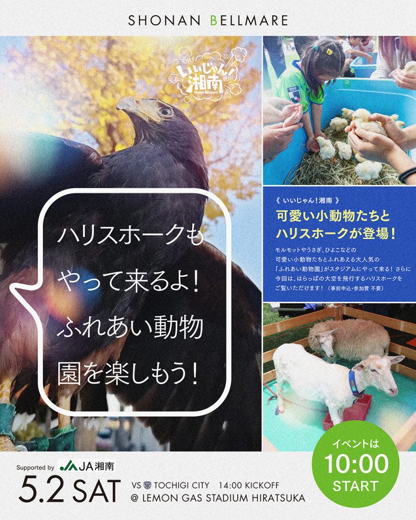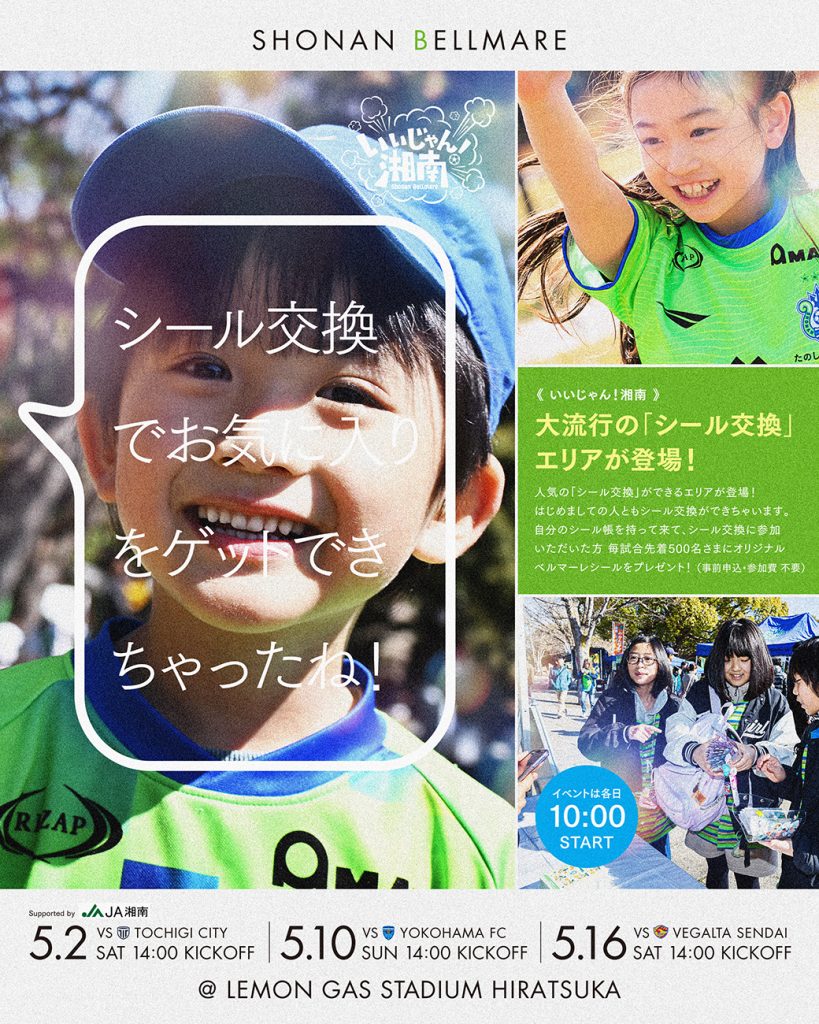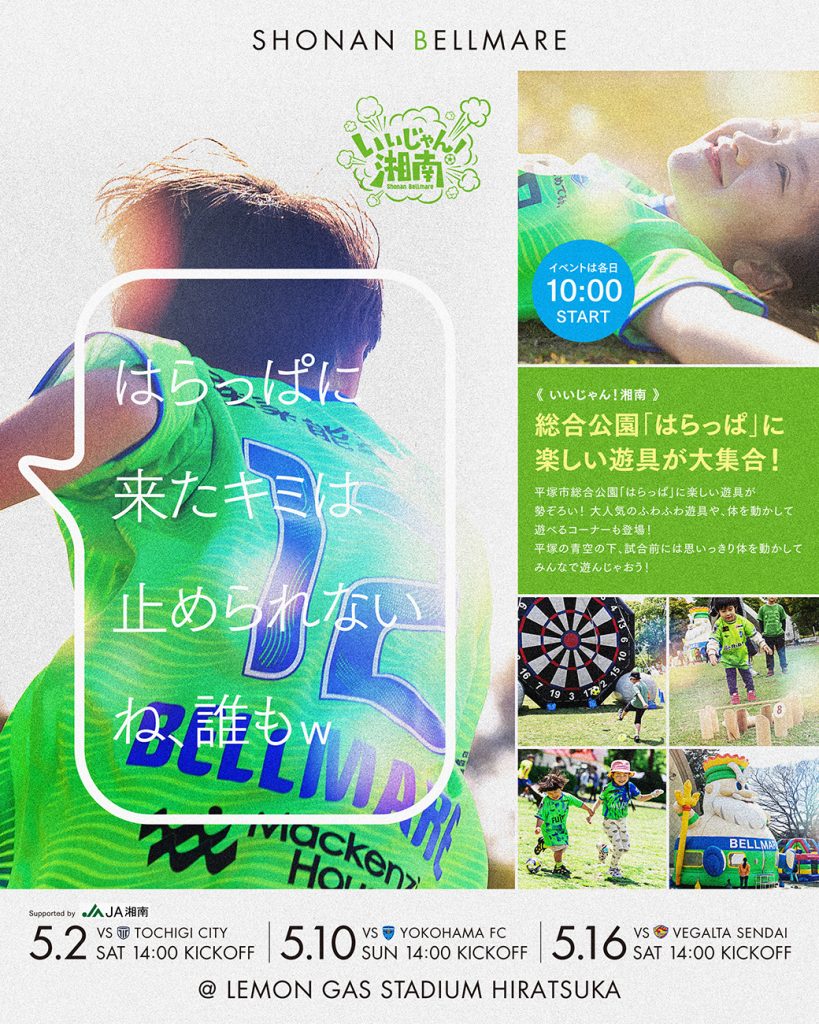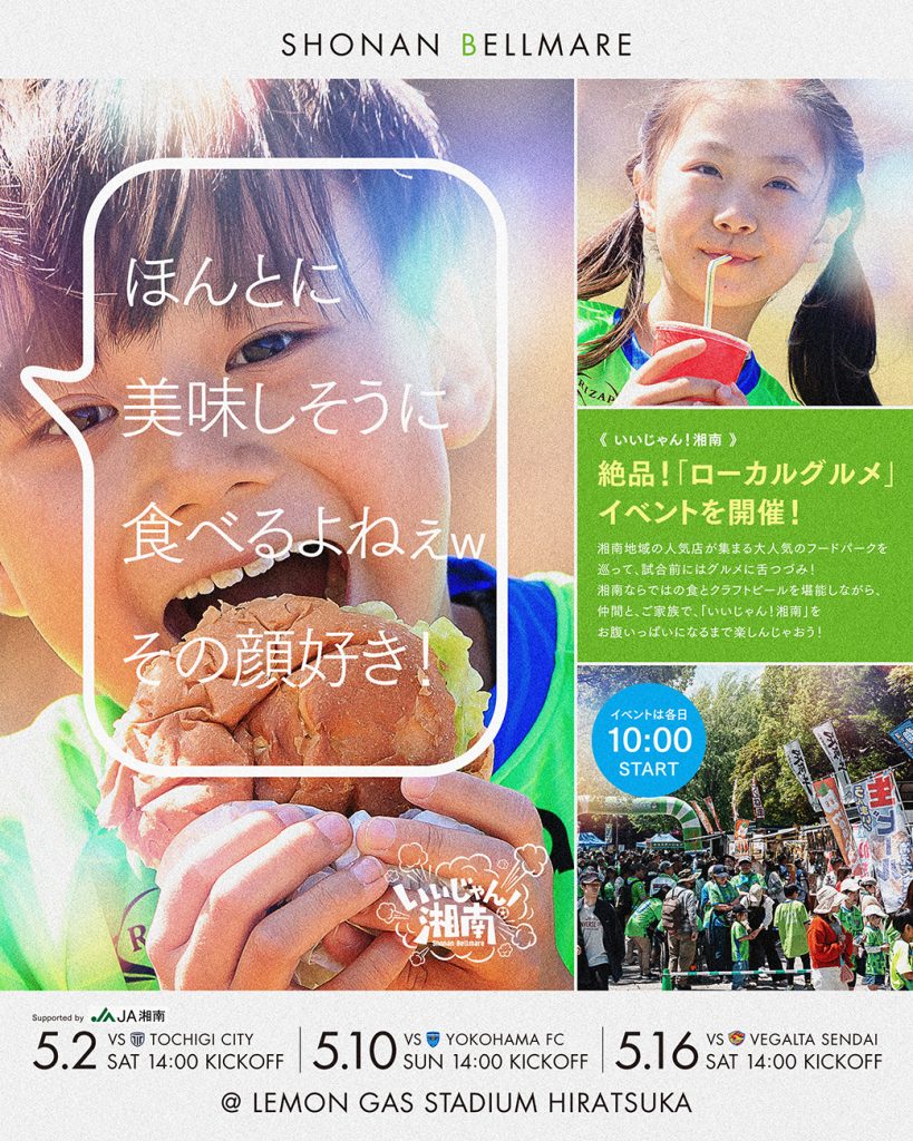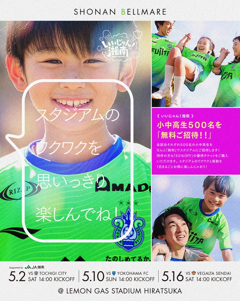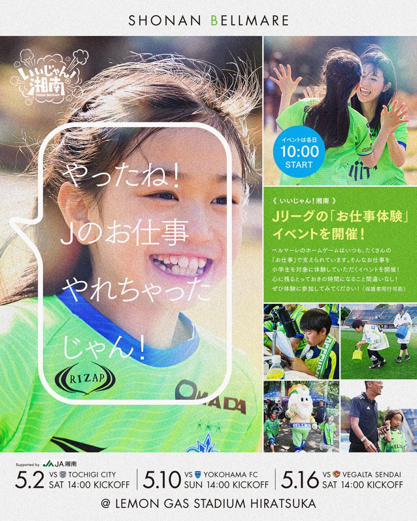 【いいじゃん湘南】5月2日(土)栃木C戦 5月10日(日)横浜FC戦 5月16日(土)仙台戦で開催!