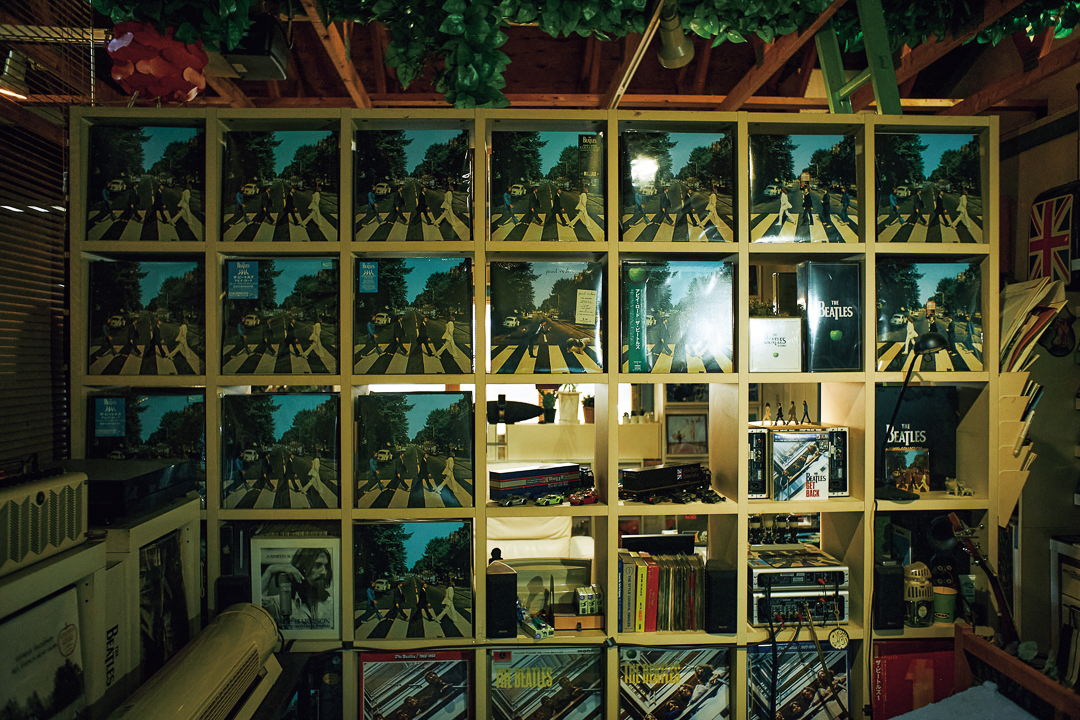 小部屋の棚はすべてビートルズの名盤「アビイ・ロード」。