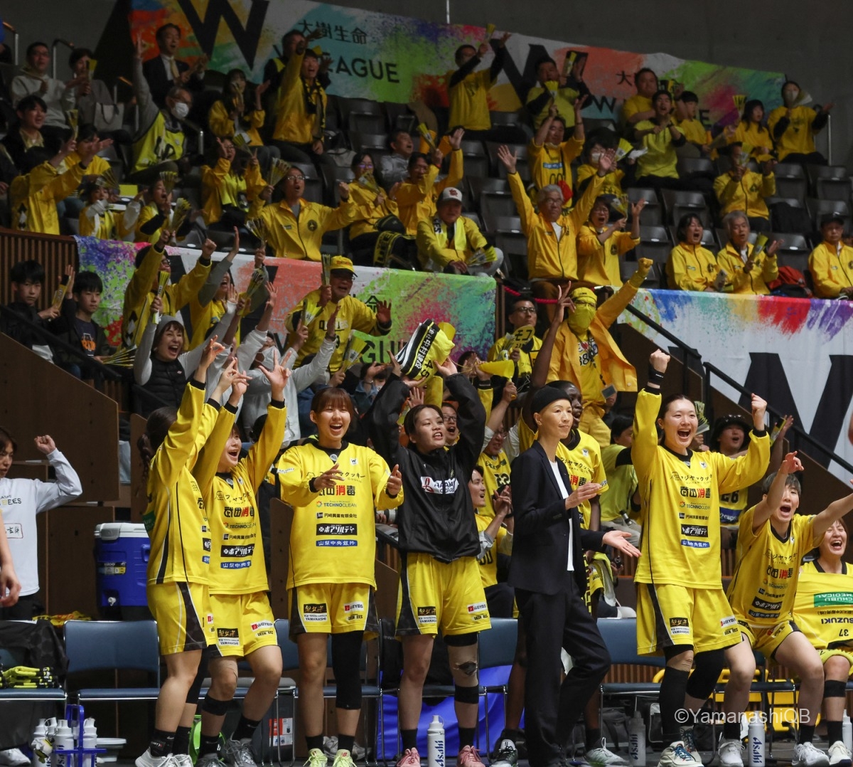 クィーンビーズベンチ裏の観客席は、シュートが決まるたびにブースターが立ち上がり、歓声を上げる。応援のボリュームも一段と増していく。その姿は、まるでホームゲームのような一体感を生んでいた。