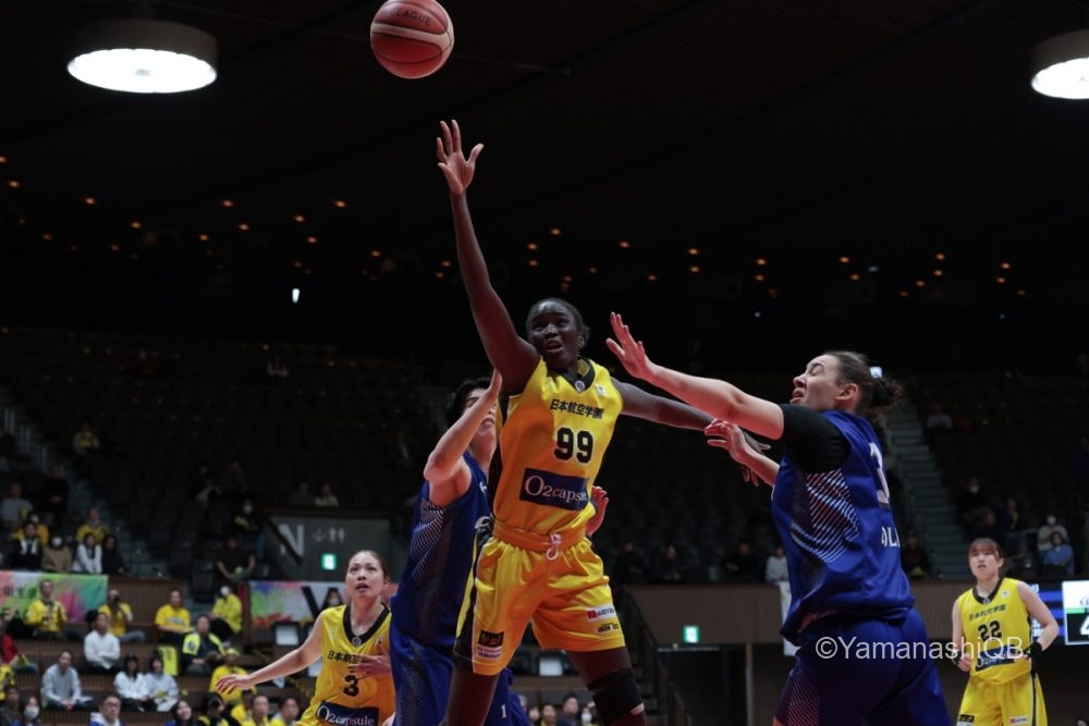 しかし中盤以降、試合の主導権は徐々にアイシンへと傾いていく。渡嘉敷がゴール下で存在感を示し始めると、ファウル、あるいはリング下での失点を許す展開となる。