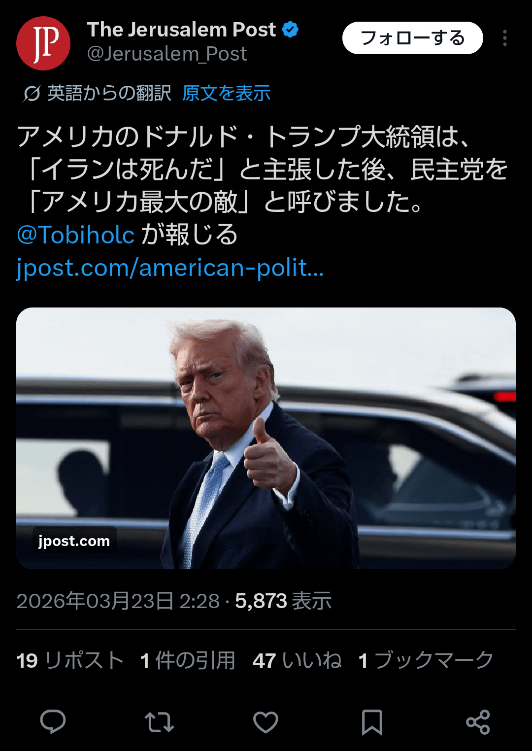 Home»Japan»トランプ「イランの死によりアメリカ最大の敵は今や左翼、民主党になった」