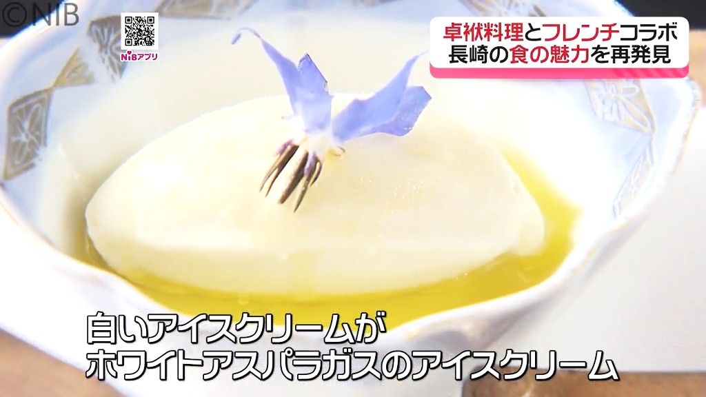 「白いアイスクリームが、ホワイトアスパラガスのアイスクリーム。