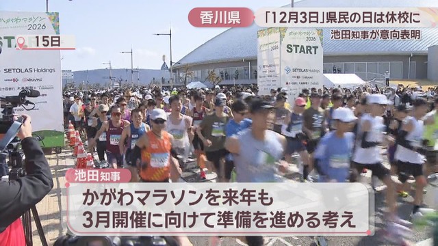 また、3月15日に第1回大会が行われた「かがわマラソン」について、2027年も3月開催に向けて準備を進める考えを示しました。
