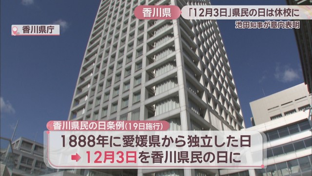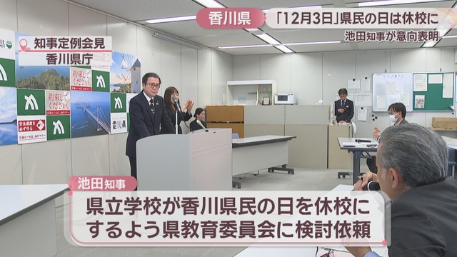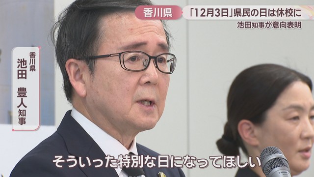 香川県では2026年から「12月3日」は地元への愛着を深める「県民の日」です。池田知事は、この日、学校を休みにしたいという考えを示しました。