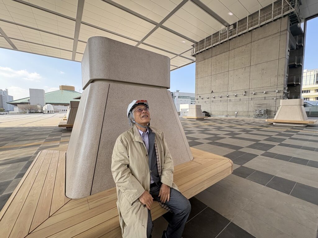リニューアルオープンを間近に控えた江戸東京博物館の「江戸東京ひろば」(3階)にて藤森照信館長(特記以外の写真:宮沢洋)