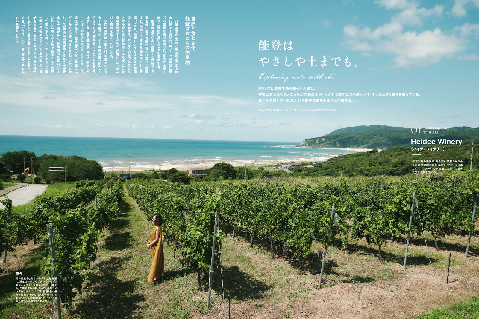 誌面モデルには、幅広い世代から支持を得る亜希さん、竹下玲奈さん、石田夢実さん。ファッションブランドディレクターの三條場夏海さんと知識優花さん、そして数々の著名人を担当する人気スタイリストの安西こずえさん。毎月能登に足を運んでいるフリーアナウンサーの藤井貴彦さんらが参画。各分野で卓越したセンスを発揮する方たちが現地を訪れ、それぞれの感性と表現で能登・金沢の魅力を伝えます。