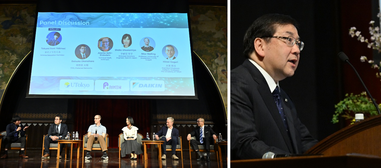 令和8(2026)年3月8日(日)、人工知能(AI)と物理学の融合をテーマとした国際シンポジウム「知の協奏: AI×物理」を開催しました。本シンポジウムは、東京大学と理化学研究所が共催し、ダイキン工業株式会社の後援、ERATO沙川情報エネルギー変換プロジェクトの研究協力、東京大学 知の物理学研究センターおよび未来ビジョン研究センター「空気の価値化ビジョン」社会連携研究部門の協力のもと実施されました。会場には約600名の参加者が集いました。