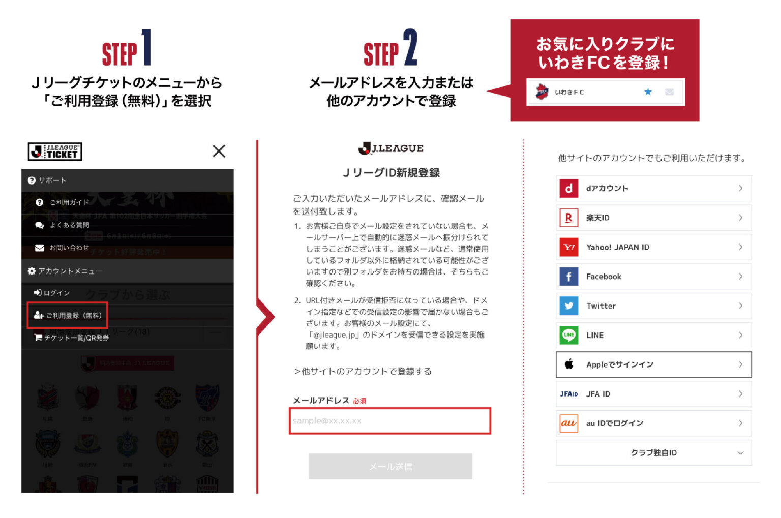 Jリーグチケット各サービスのご利用にあたっては、JリーグIDを取得する必要があります。JリーグIDを新たに取得する場合は、以下のように「Jリーグチケット」ページのメニューからお手続きください。